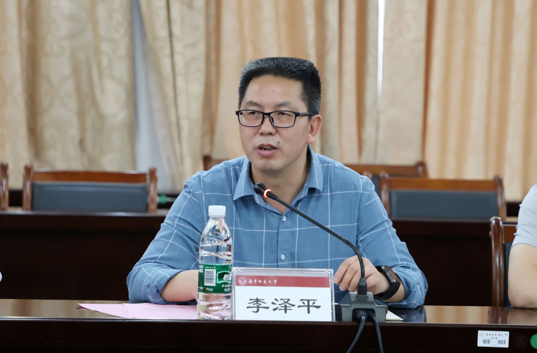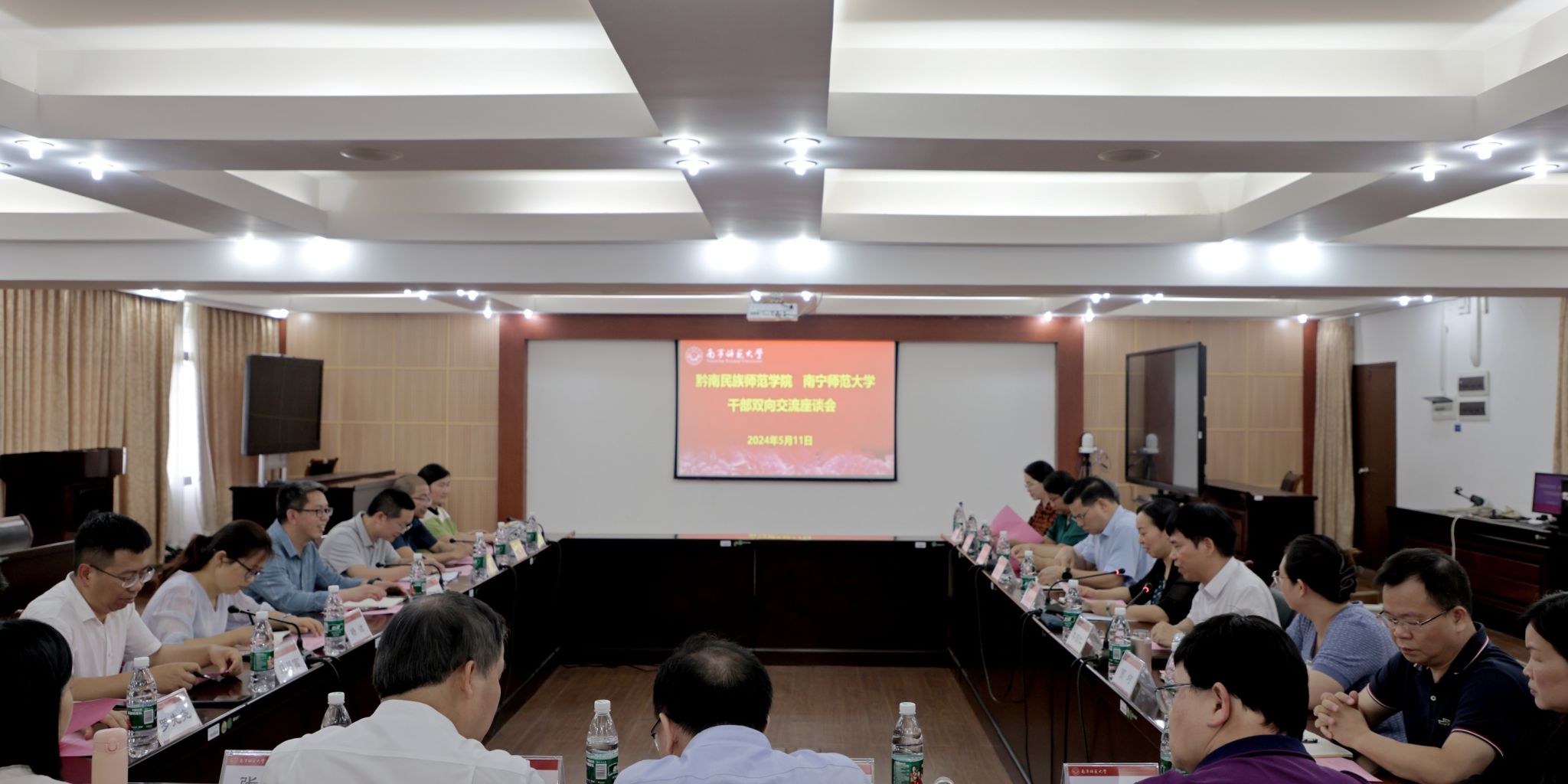 李泽平副校长对我校的热情接待和几年来的倾力帮助表示感谢,并对南宁师范大学选派的专家和干部在黔南民族师范学院的岗位安排和工作计划进行了说明,希望进一步加强两校的合作交流,共同推动组团内协同提质计划深入开展。