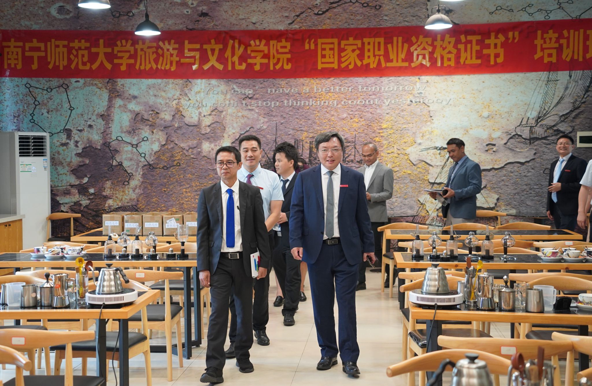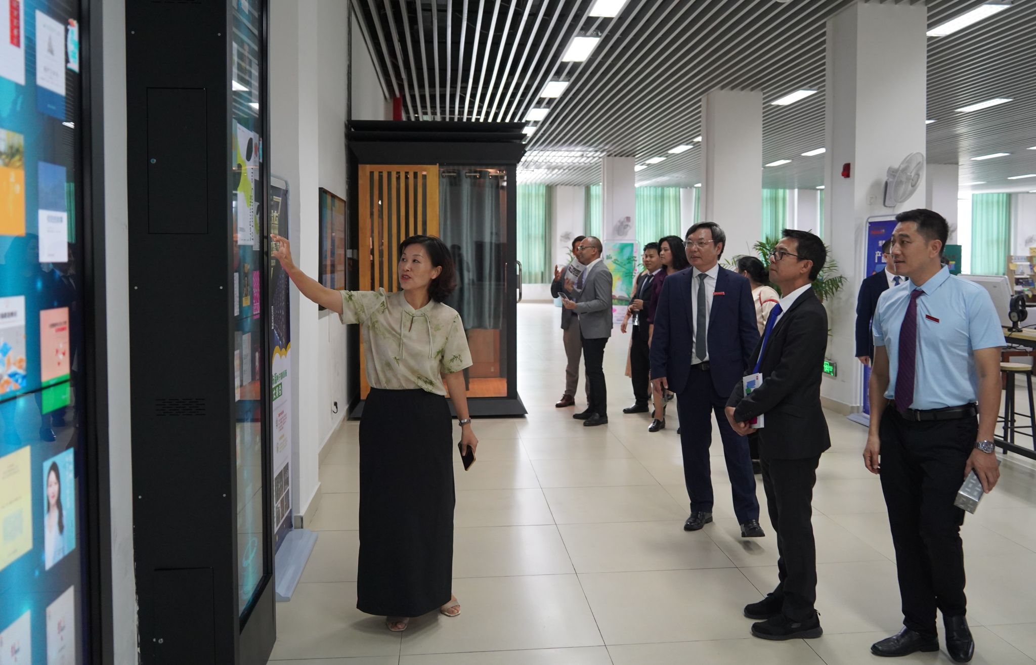 随后,代表团一行在李传起校长及相关单位负责人的陪同下参观了武鸣校区图书馆、学校办学成果展及旅游与文化学院、美术与设计学院毕业作品展等,充分了解我校的发展历史、办学特色及取得的丰硕成果。