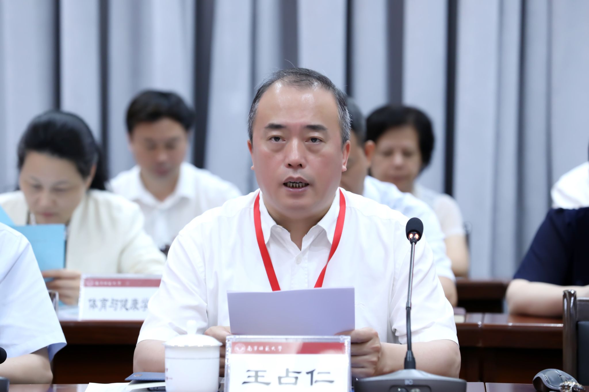 王占仁代表专家组向学校反馈了线上与线下评估整体情况,充分肯定了我校在本科教育教学改革与建设中的举措及成效。专家组一致认为,南宁师范大学思想政治工作体系完善,形成“三全育人”格局,师范教育特色鲜明,教育教学成果突出,师资队伍建设特色鲜明、成效明显,专业与课程建设成果突出,创新创业教育成效显著,创新构建了地理与资源环境类人才培养体系。