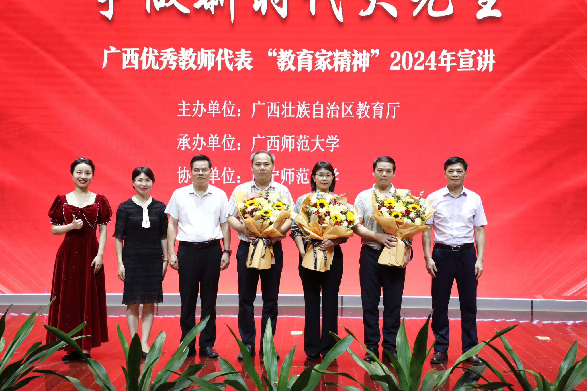 为深入学习贯彻习近平总书记关于教育的重要论述,大力弘扬教育家精神,引导广大教师深刻认识在教育强国、科技强国、人才强国建设中肩负的光荣使命与重大责任,引导广大师范生自觉树立教师职业理想,6月20日,由自治区教育厅主办、广西师范大学协办、我校承办的广西优秀教师代表“教育家精神”2024年巡回宣讲报告会在我校五合校区举行。我校赵伟副校长参加报告会并致辞。