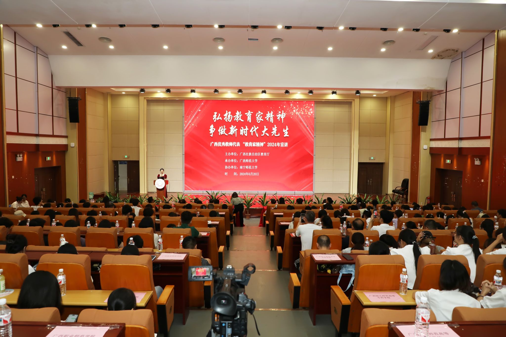 南宁师范大学、广西民族大学、广西艺术学院、广西职业师范学院、广西外国语学院、广西体育高等专科学校、广西幼儿师范高等专科学校、南宁职业技术学院、广西工业职业技术学院等9所驻邕高校教师和师范生代表,南宁市中小学(含幼儿园、中等职业学校)校长和教师代表共400余人聆听了报告会。
