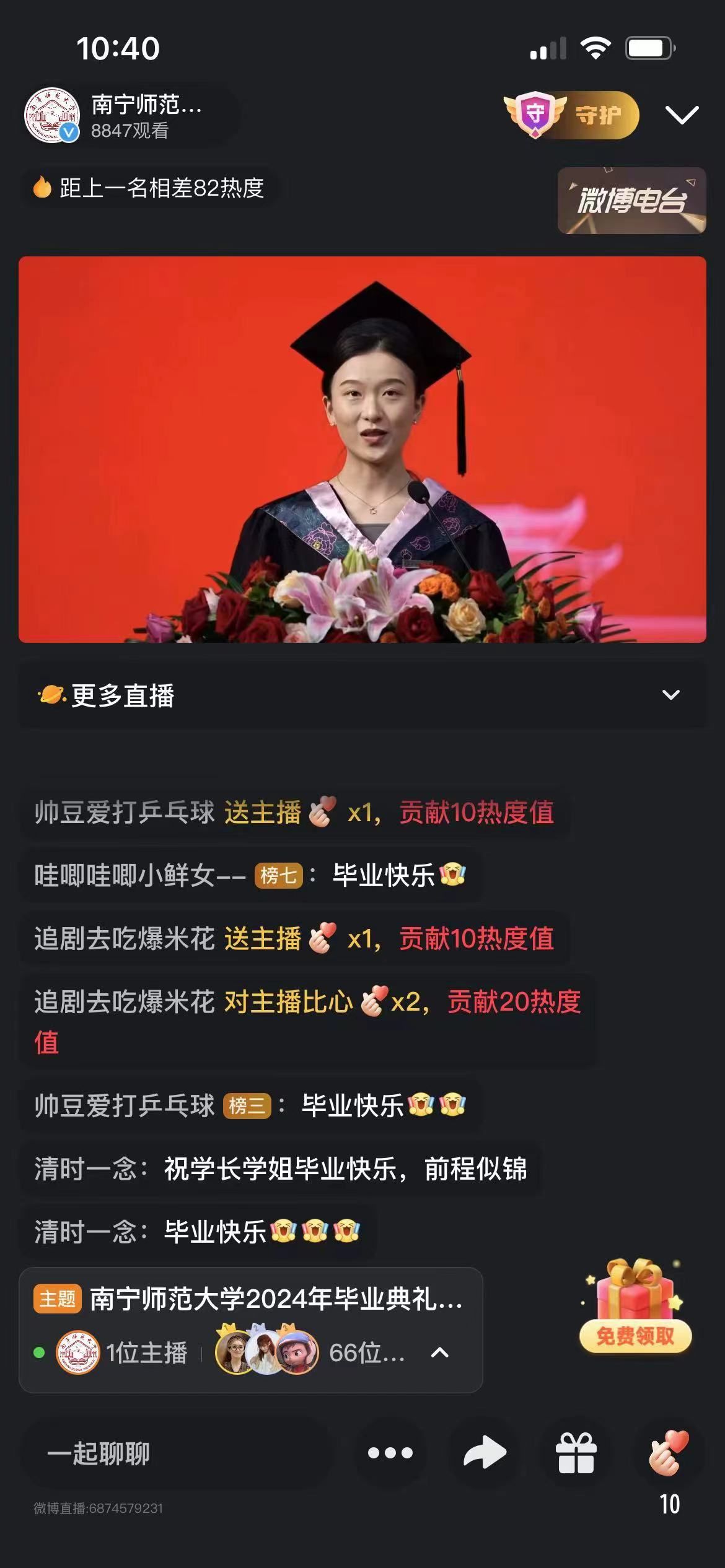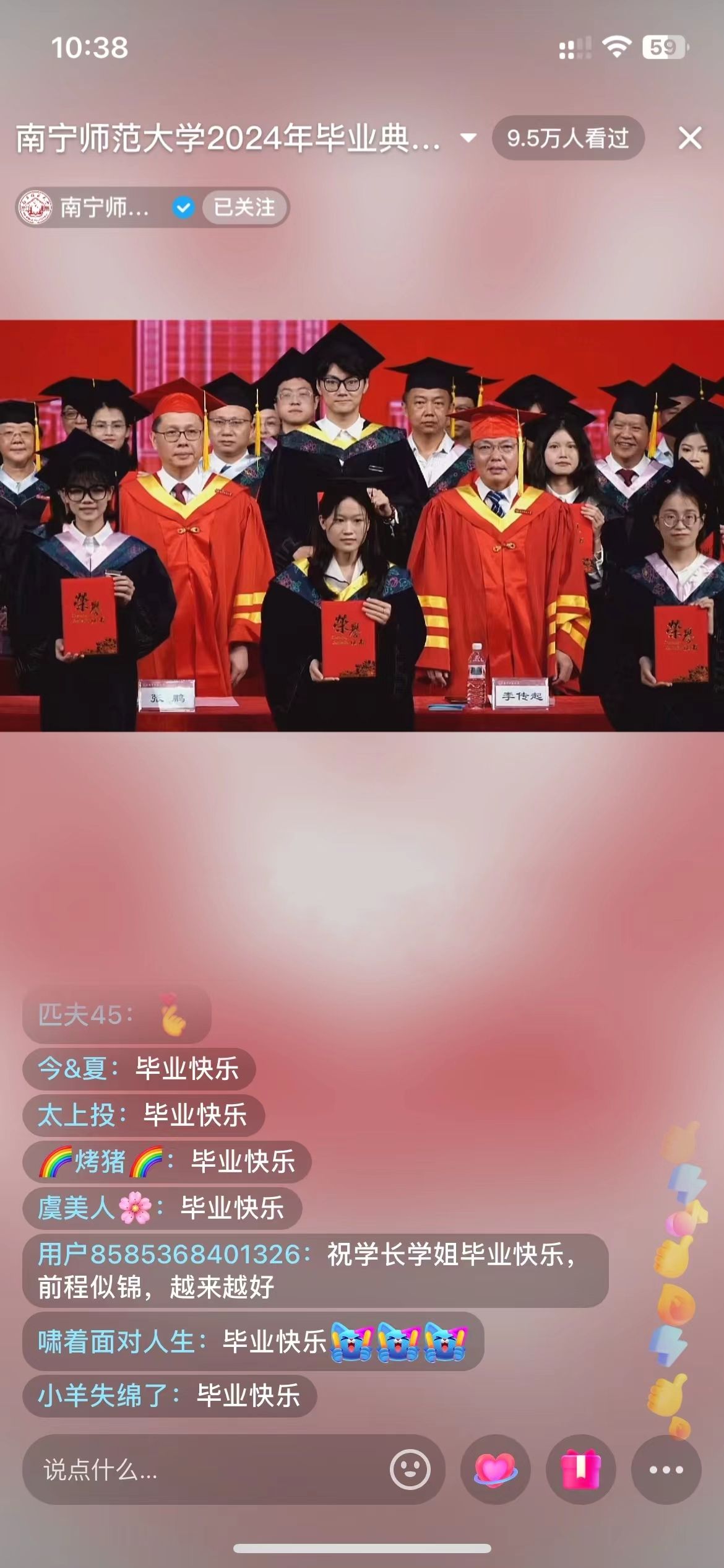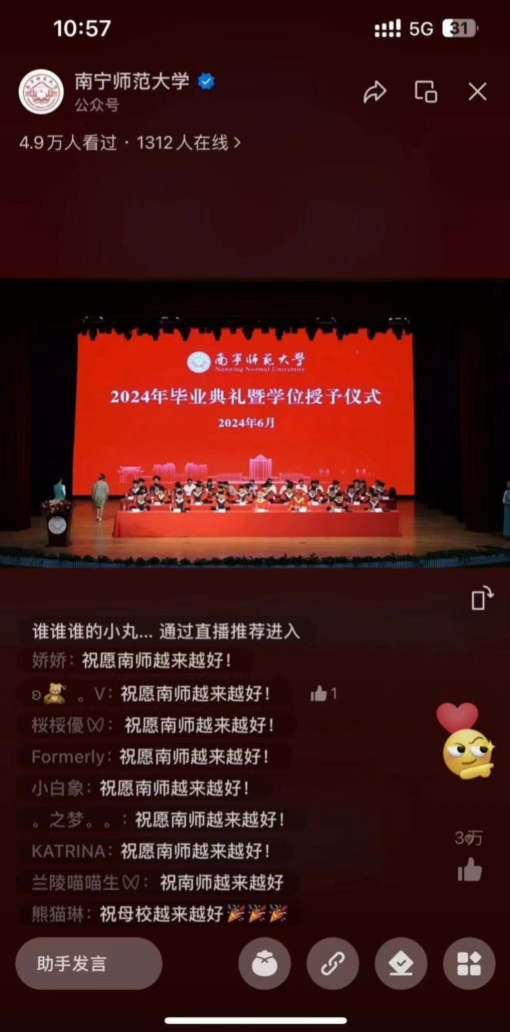 上午10点,在雄壮的国歌声中,南宁师范大学2024年毕业典礼暨学位授予仪式正式拉开帷幕。