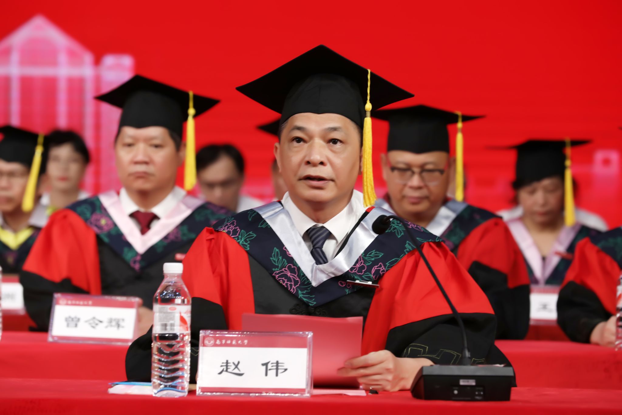 夏日蝉鸣,骊歌唱响。6月21日上午,我校在武鸣校区举行2024年毕业典礼暨学位授予仪式。学校领导张鹏、李传起、徐书业、赵伟、肖琦、龙妮娜、梁家斌,学校学位评定委员会委员、各职能部门和学院负责人,教师代表、家长代表、校友代表及2024届毕业生现场参加毕业典礼。典礼由学校副校长赵伟主持。