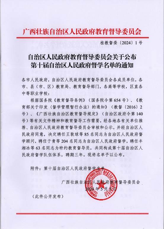 6月26日下午,自治区人民政府召开加强督学队伍建设第十届自治区人民政府督学聘任工作会议。自治区政府李常官副主席出席并发表讲话。我校党委副书记侯代忠研究员、王屹教授、朱家安教授受聘为第十届人民政府督学,聘期三年(2024年5月—2027年5月)。侯代忠副书记作为本科院校代表上台接受自治区领导颁发督学证书。