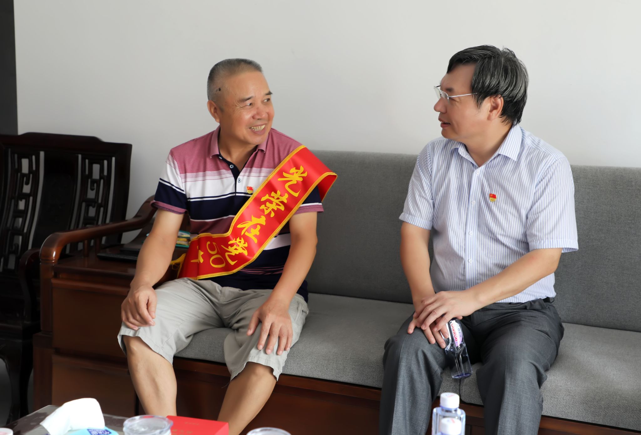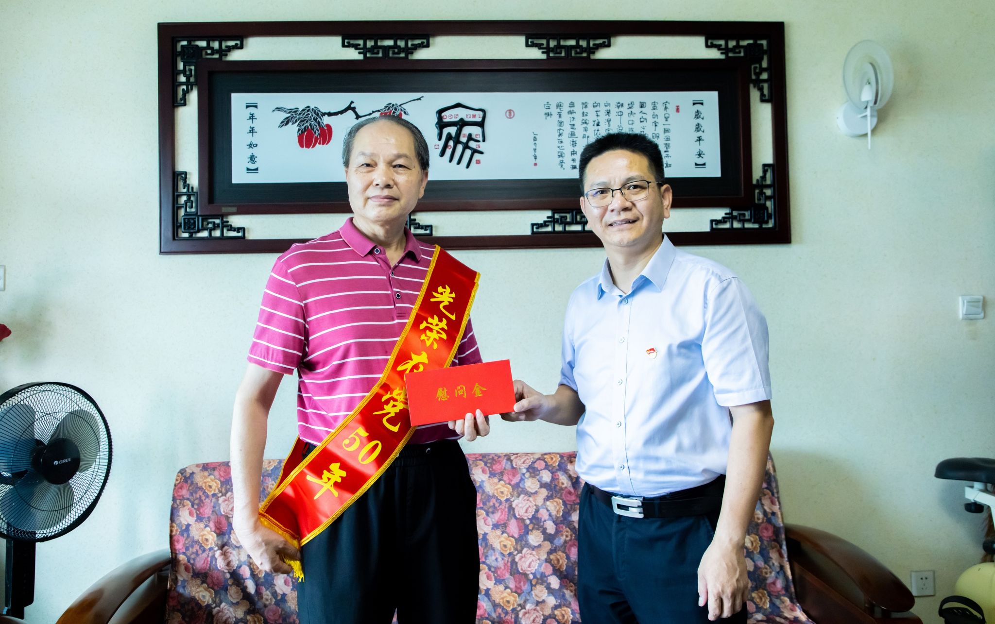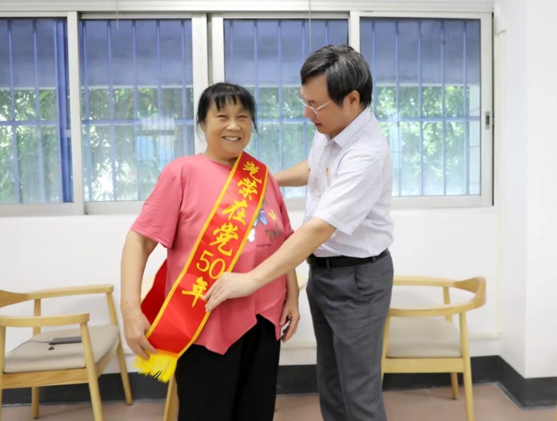 学校领导一行看望慰问了离退休老党员代表陈毓文、“光荣在党50年”党员代表傅真放、罗勇岐、李若华、麦淑玲、梁发龙、薛峻、韦亿烛以及生活困难党员代表梁浩然、周维生,为他们送上慰问金,颁发“光荣在党50年”纪念章。每到一处,学校领导与离退休老同志亲切交谈,关心询问他们的健康状况、生活情况,认真倾听他们讲述入党初心故事和工作感悟,真诚感谢他们为党的教育事业和学校建设发展所做出的贡献,祝愿他们身体健康,生活幸福,安享晚年。