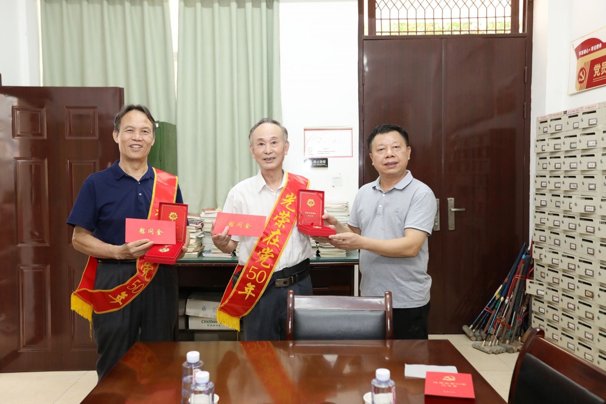 “七一”前夕,学校共走访慰问39名离退休老党员、生活困难党员和14名“光荣在党50年”党员,为他们发放“七一”慰问金2.65万,切实把党组织的温暖与祝福送到老党员的心坎上,进一步增强了党组织的凝聚力、号召力。