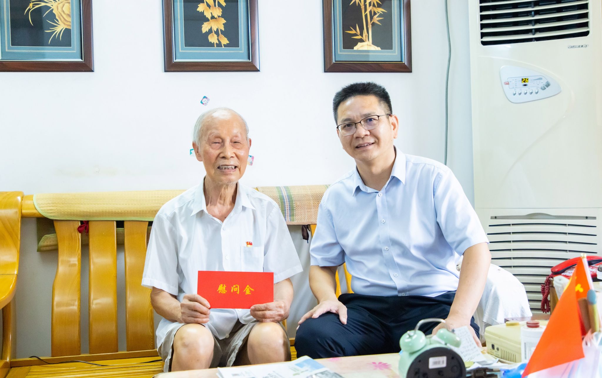 在建党103周年来临之际,6月30日—7月1日,学校领导张鹏、李传起、侯代忠、隆广庆、徐书业分别带队走访慰问离退休老党员和生活困难党员代表,为他们送上党的关怀和温暖,向他们致以节日的问候和祝福。党办校办、组织部、学工部(处)、政策法规与发展规划处、校工会、离退休教职工服务中心负责人陪同走访慰问。