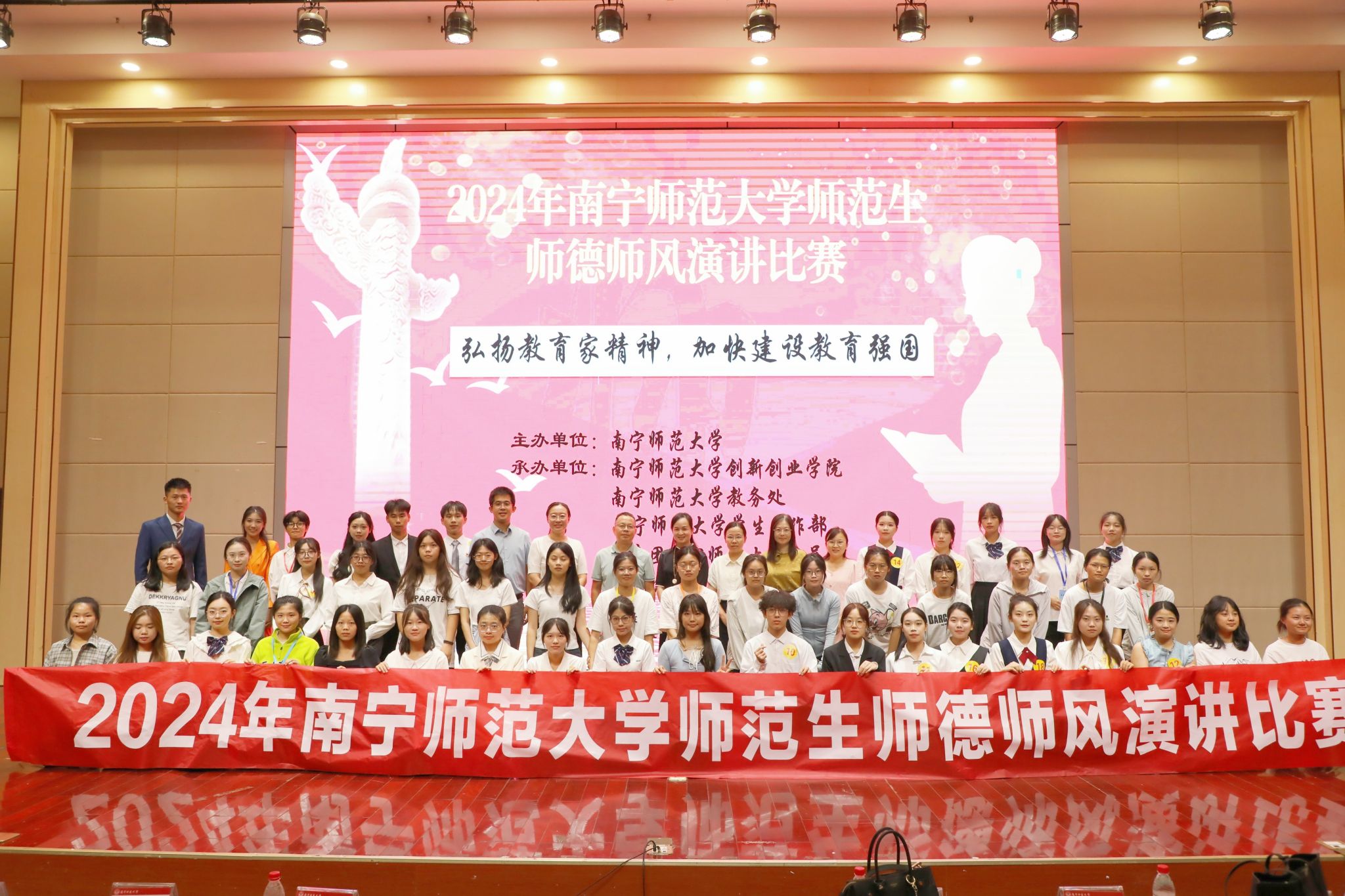 9月24日,由创新创业学院、教务处、学生工作部、校团委联合举办,辩论与口才协会协办的2024年南宁师范大学师范生师德师风演讲比赛在五合校区文综楼114学术报告厅举行。