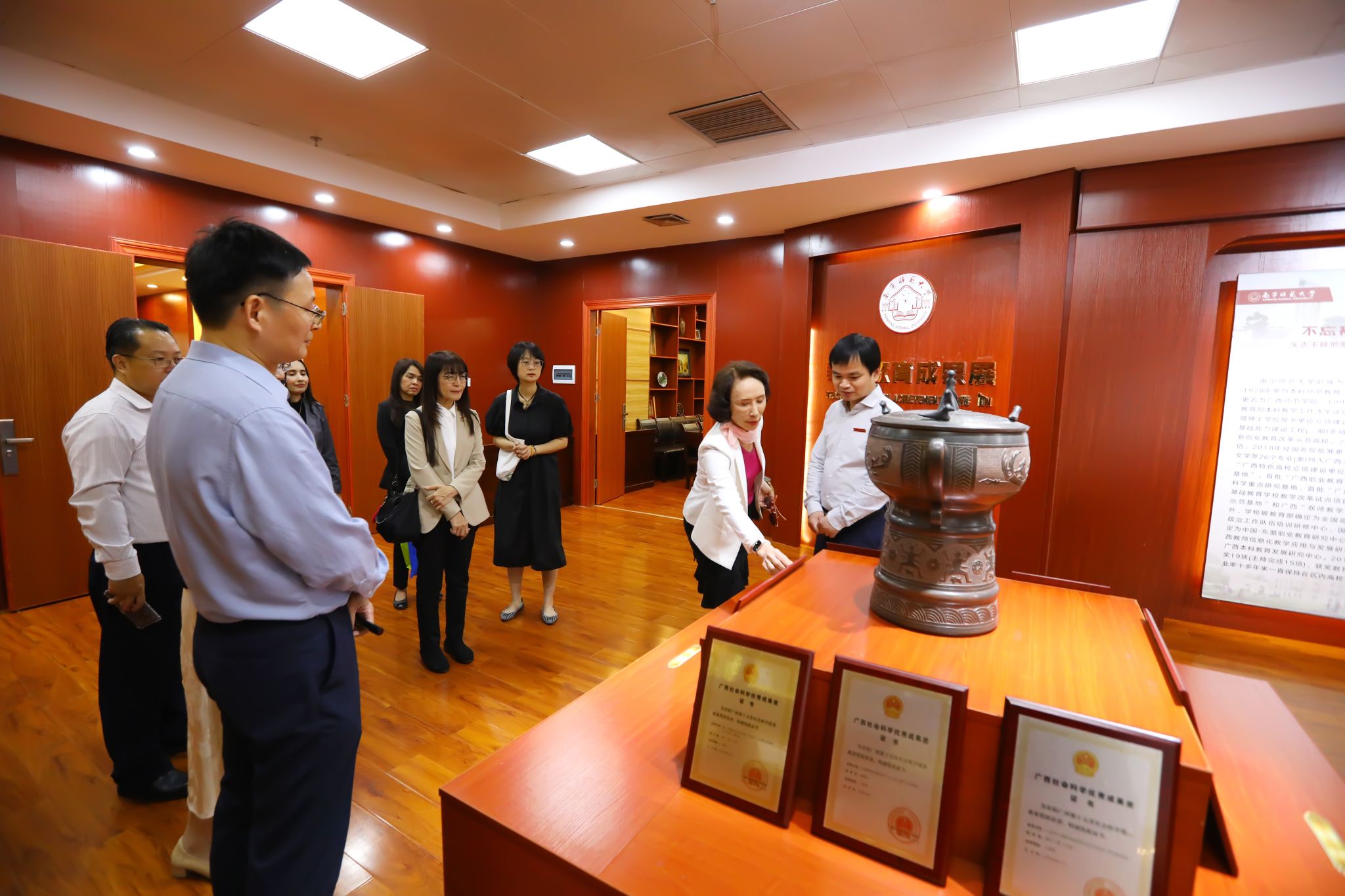 会前,肖琦陪同代表团一行参观了学校泰语中心、外语楼国际文化交流展示区、学校沙盘及教师教育展。