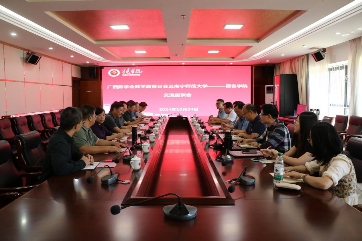 10月24日下午在百色学院开展边境数学教育大中小一体化建设调研交流座谈会。百色学院副校长吴佩杰,百色学院数理科学与统计学院负责人、数学骨干教师代表等10人参加了座谈交流会,大家就边境数学教育大中小一体化建设、实施本科教学综合改革的具体举措、学院质量监控如何有效监控课程的两性一度、应用型专业校企合作开展情况及建设、学院办学主体作用的激励机制等主题进行了研讨交流,我校广西现代教育杂志社名誉社长兼总编辑黎海英教授编审为百色学院近200名师生作了“教育教学论文写作与投稿”专题报告。