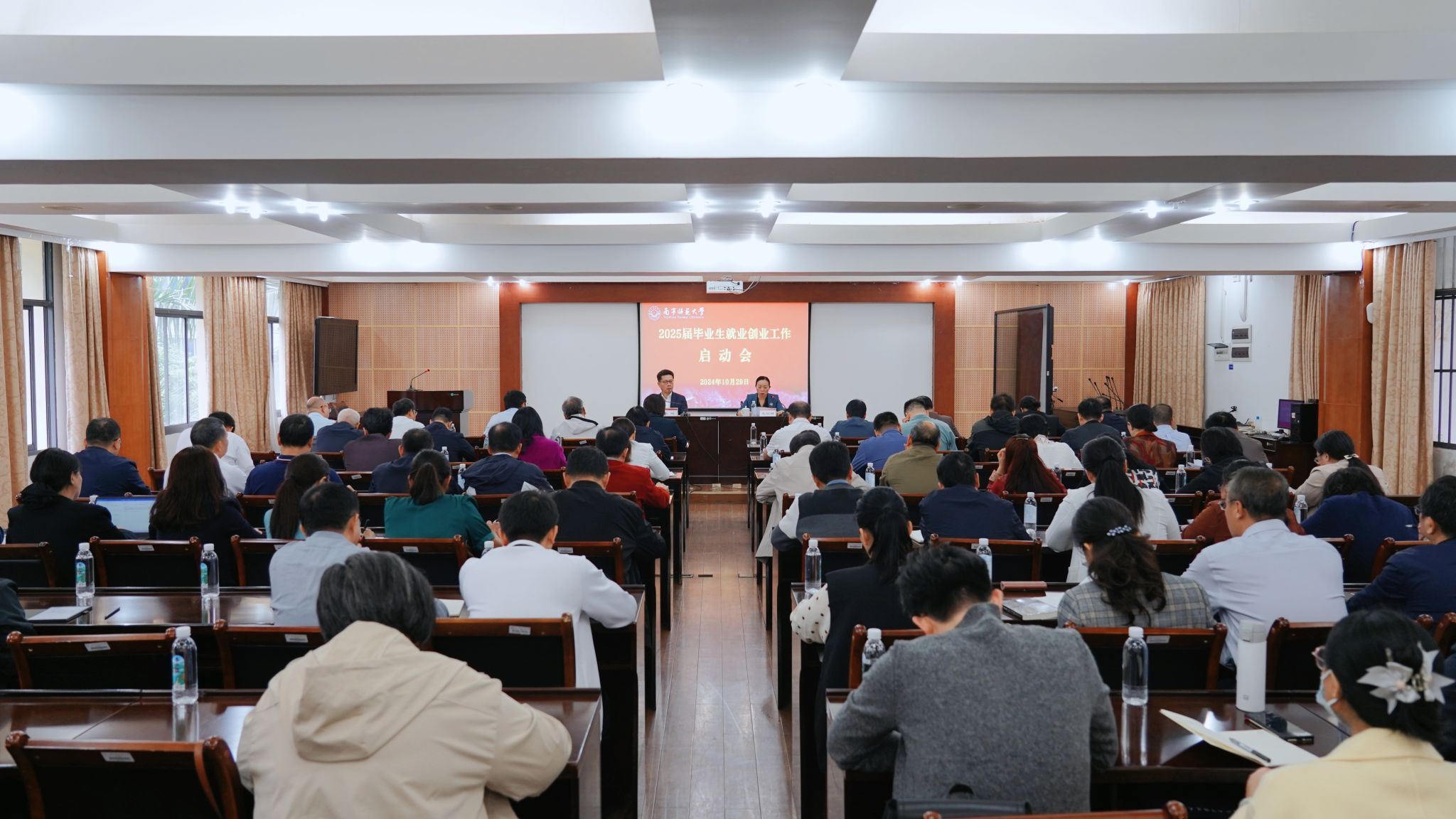 为全面落实党中央、国务院关于做好高校毕业生就业工作的决策部署和自治区教育厅2025届高校毕业生就业工作启动会的有关要求,10月29日上午,学校在明秀校区鸿远楼409会议室召开2025届毕业生就业创业工作启动会,学校党委书记张鹏、副校长龙妮娜出席会议。会议由龙妮娜副校长主持。