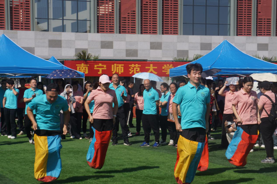 10月31日上午,来自四个校区的1100多名教职工齐聚武鸣校区兰园田径场,参加2024年教职工趣味运动会。运动会设置了“一圈到底”“筷子夹球”“趣味胸背夹球”“欢乐袋袋跳”“四平八稳”“同舟共济”“抛绣球”等集体比赛项目。本次运动会参与教职工人数创历史纪录,推动了教职员工健身活动的广泛开展,提升了师生的凝聚力、向心力。
