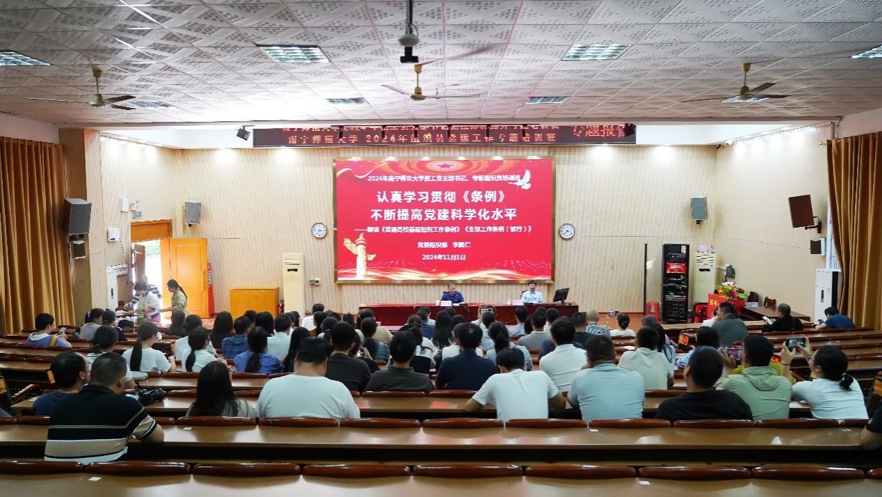 11月1日下午,学校举办2024年教工党支部书记、专职组织员培训班第二场专题报告会,校党委组织部部长李图仁作了题为“认真学习贯彻《条例》 不断提高党建科学化水平——解读《普通高校基层党组织工作条例》《中国共产党支部工作条例(试行)》”的专题报告。校党委组织部副部长吴少进主持报告会。