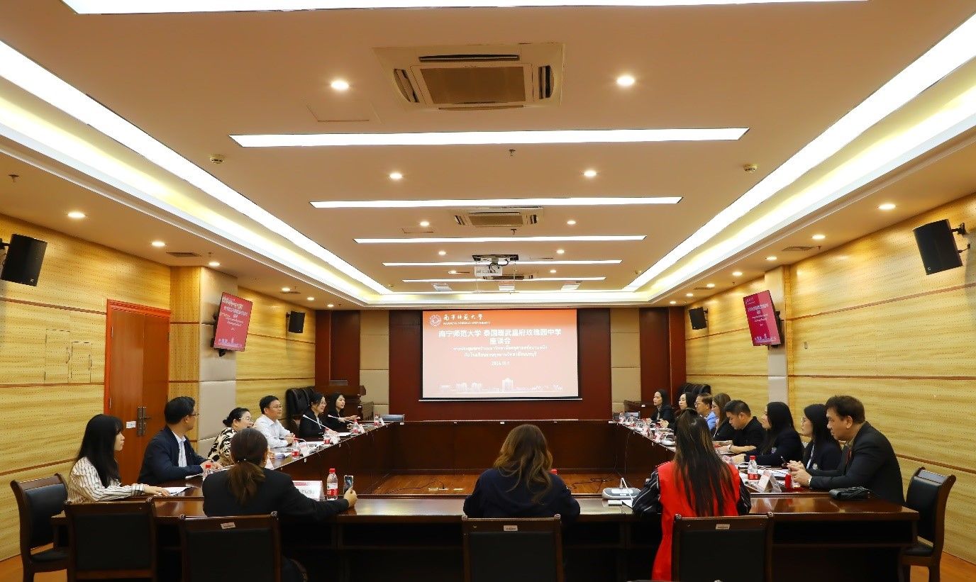 随后,在图书馆二楼会议室召开南宁师范大学与泰国暖武里府玫瑰园中学座谈会,与会双方一同观看了两校宣传专题片,围绕教师培训、学生实习等方面开展合作进行了深入交流,我校与泰国暖武里府玫瑰园中学签订了教育合作备忘录。