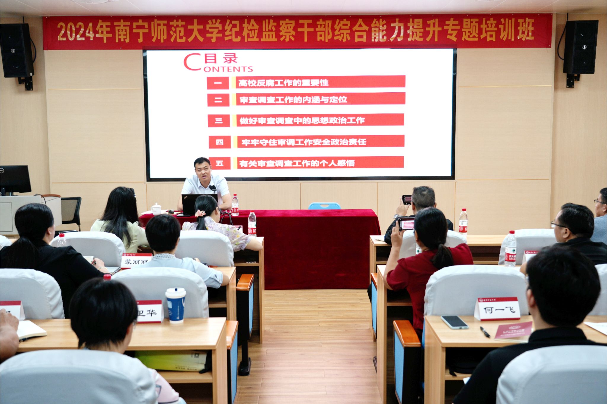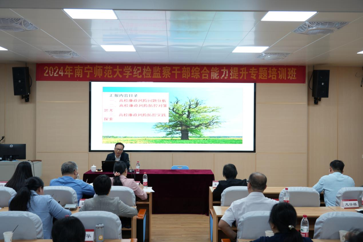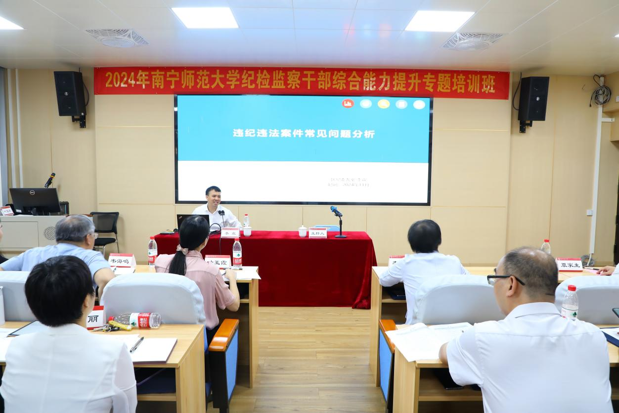 为进一步加强学校纪检监察干部队伍建设,近日,学校纪委举办了2024年南宁师范大学纪检监察干部综合能力提升专题培训班,学校纪委书记、纪委委员、专职纪检监察干部、二级纪委书记共30余人参加了此次专题培训班。
