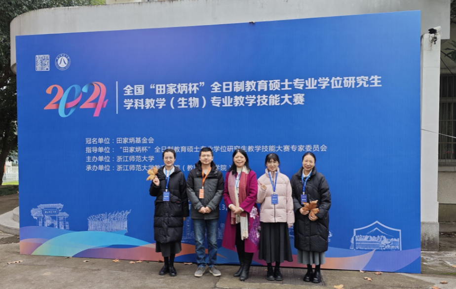 12月11日至13日,2024年全国“田家炳杯”全日制教育硕士专业学位研究生学科教学(生物)专业教学技能大赛决赛在浙江师范大学举办。环境与生命科学学院院长何英姿带队参加了比赛。我校学科教学(生物)专业共3名研究生入围决赛,其中龚赛帅获得二等奖,卢丽娟获得三等奖,韦品翠获得优秀教学设计奖。杨剑老师获得优秀指导教师奖。