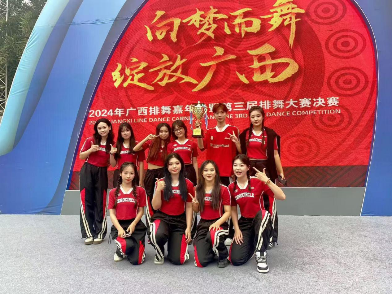 近日,由广西壮族自治区体育局主办,广西社会体育运动发展中心、广西学校体育卫生艺术学会、广西壮族自治区群众艺术馆承办的2024年广西排舞嘉年华暨第三届排舞大赛总决赛在南宁市民歌湖广场进行,我校大学生艺术团在决赛中荣获普通高校学校组小集体开放项目第一名。
