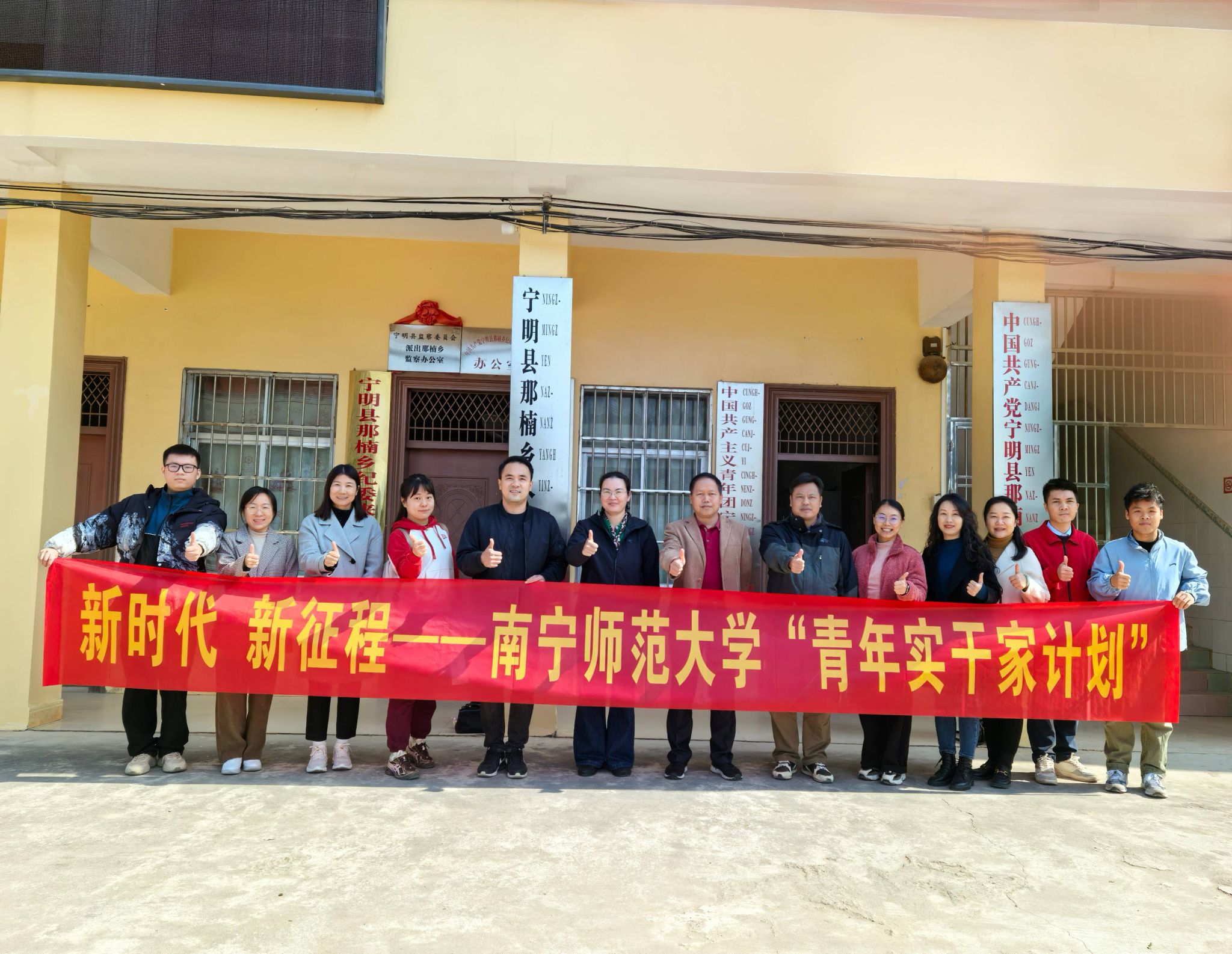 为深入贯彻落实习近平总书记关于青年工作的重要思想,全面贯彻党的二十大和二十届三中全会精神,落实团中央和共青团广西区委“青年实干家计划”工作部署,12月23日,我校在宁明县那楠乡政府举办南宁师范大学2024年“青年实干家计划”启动仪式,宁明县那楠乡党委负责人,校学生工作部、校团委负责人以及我校“青年实干家计划”入选成员参加了启动仪式。