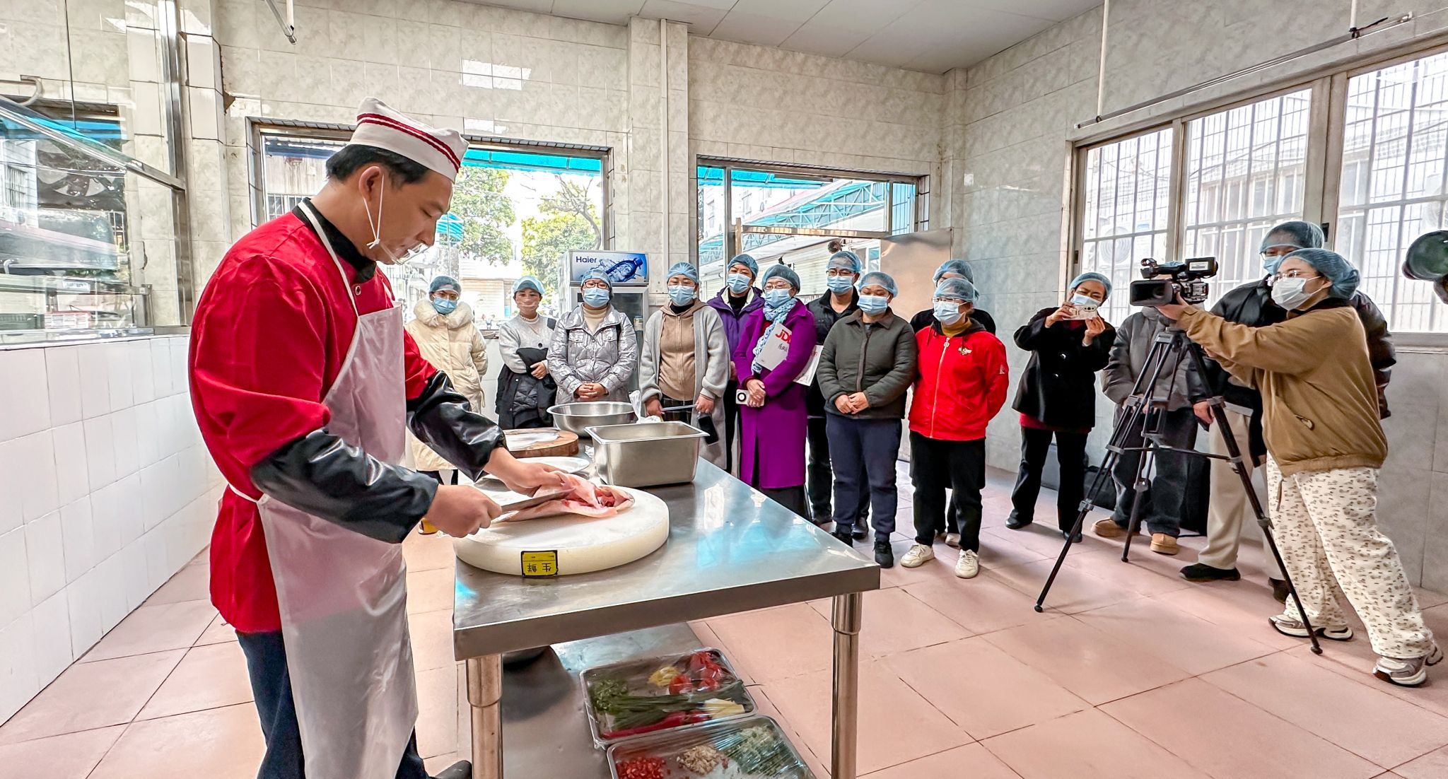 为了喜迎2025年新年到来,进一步打造幸福和谐校园,弘扬中华传统饮食文化,12月20日下午,校工会与后勤基建处膳食科联合在我校明秀校区食堂举办心系职工、办好“食”事系列活动之跟着厨师学做年夜菜活动。