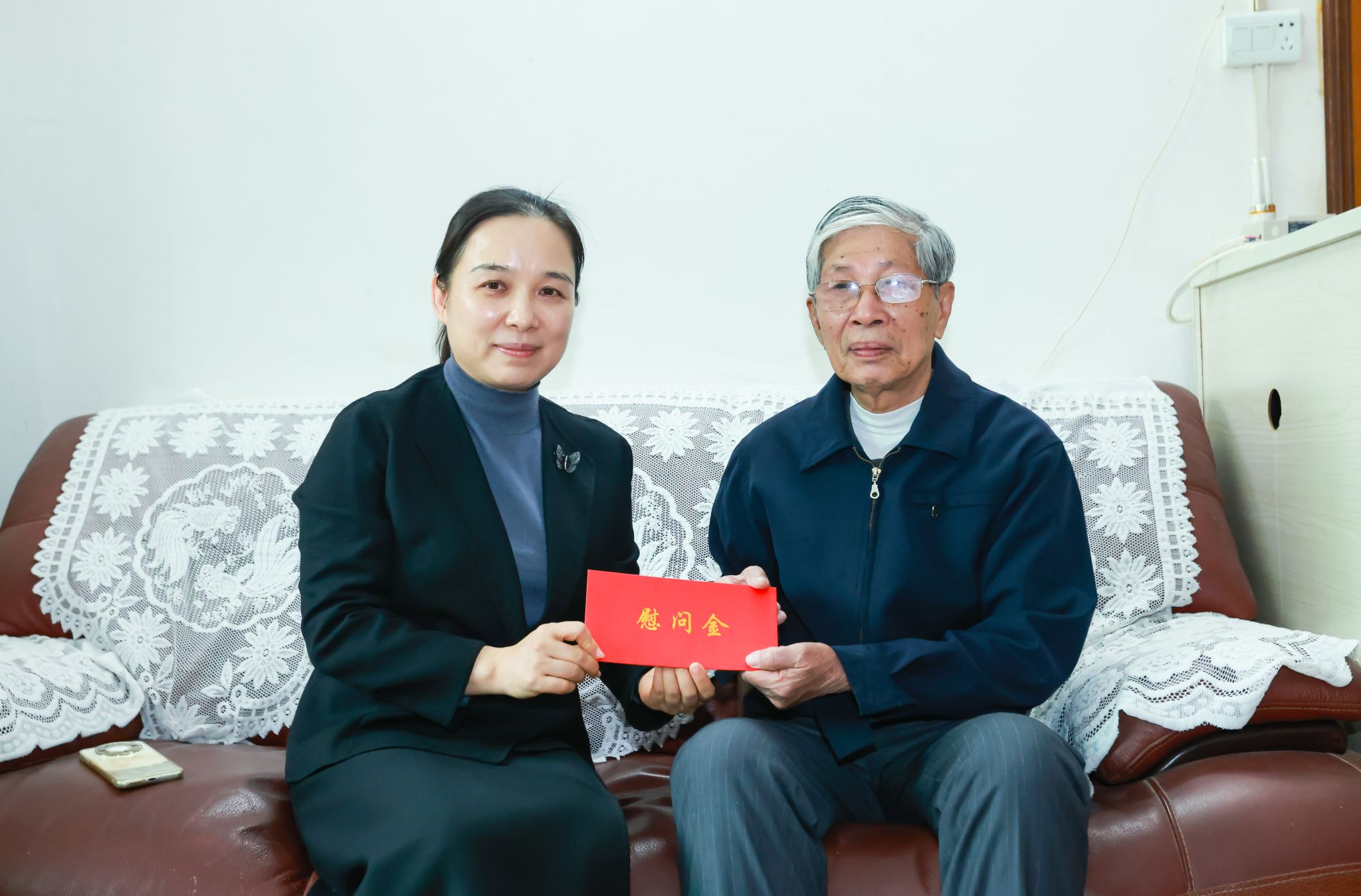 在2025年新春佳节即将来临之际,1月7日至11日,学校领导张鹏、李传起、隆广庆、唐荣双、李美清分别带领党办校办、组织部、宣传部、人事处、离退休教职工服务中心和建政校区管理委员会等部门负责人,上门走访慰问离退休老党员、老干部和生活困难退休教职工代表安育华、黄亢美、郭家鼎、凌泉方、李迎十、农秀英、刘金元、吴中文、汪为明、崔柳生。