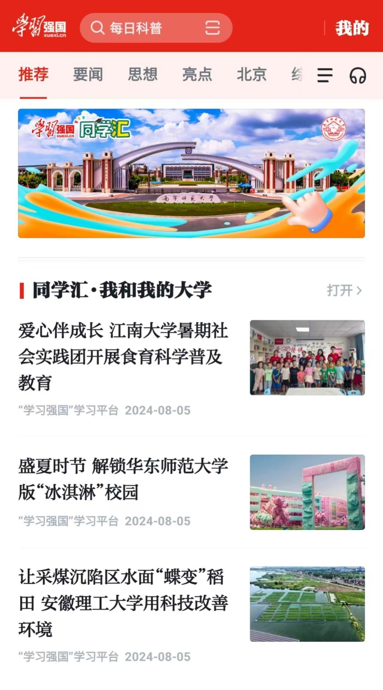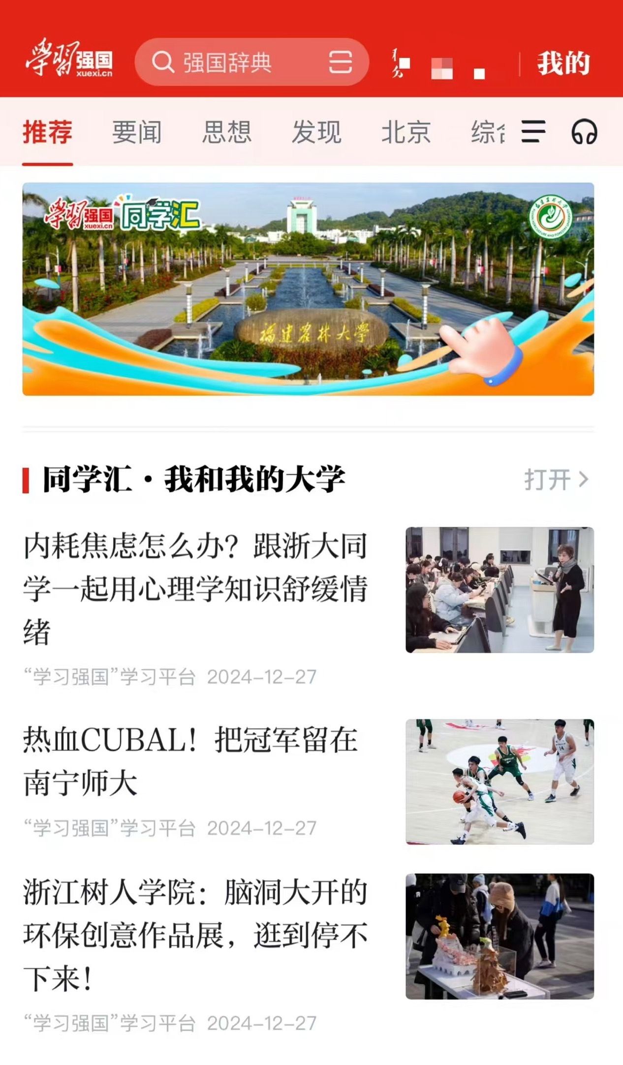 学校党委一直高度重视“学习强国”学习平台的推广使用,将其作为加强理论学习、提升师生理论素养、强化新闻宣传的重要抓手。截至目前,学校的“学习强国”同学汇号已发布超过400篇图文和视频内容,吸引了大量师生的关注和参与,订阅量超过1.6万人,访问量突破34.6万人次。2024年,学校多次上榜“同学汇”高校热度榜TOP50,优质内容多次获“学习强国”学习平台首页推荐。