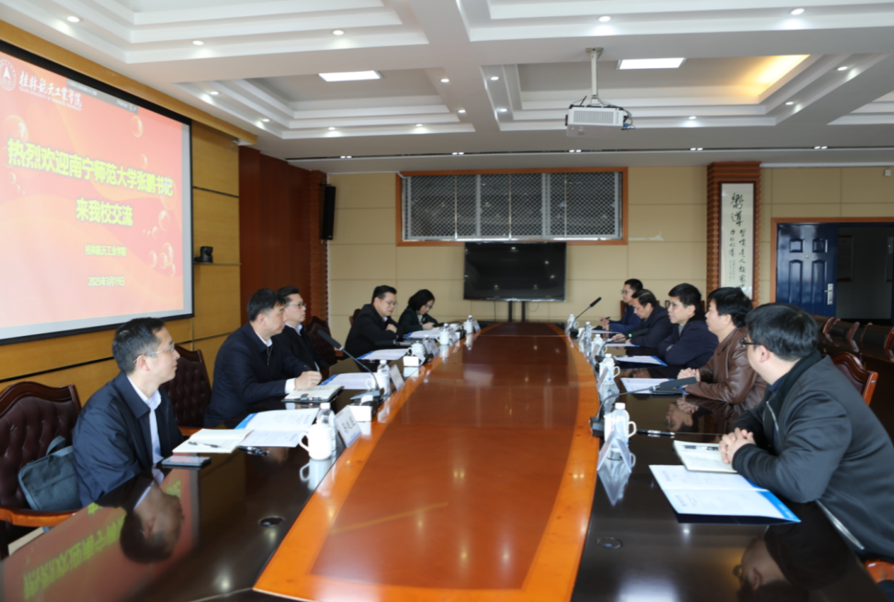 为深入贯彻国家人工智能发展战略和自治区党委“以人工智能+赋能千行百业”要求,推动“AI+”赋能教育高质量发展,3月19日至21日,学校党委书记张鹏、副校长王国红率领学校党办校办、人事处、科研管理处、国有资产与实验室管理中心等部门负责人前往桂林、柳州、来宾三地兄弟高校走访调研,就人工智能实验室建设、重点实验室建设和管理、校地企合作、产学研一体化等工作展开调研交流。