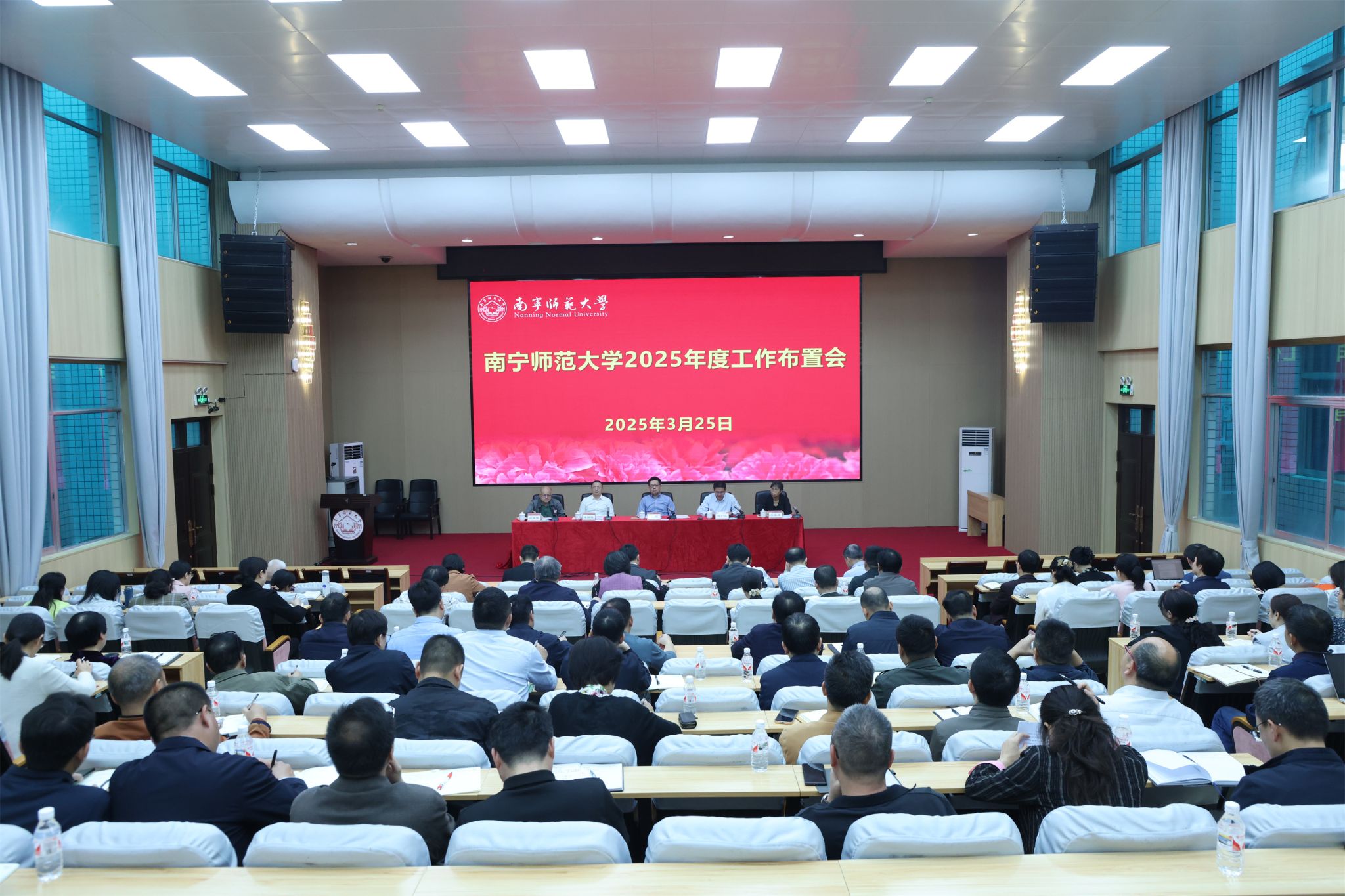 会议强调,立足新时期、新阶段,全校上下要以习近平新时代中国特色社会主义思想为指导,进一步凝聚共识,发挥学校主人翁精神,以更加饱满的热情、更加昂扬的斗志、更加务实的作风投入新一年的工作当中,主动作为,扎实做好各项工作,以实干诠释教育初心,用创新谱写事业新篇,不断推动南宁师范大学各项工作再上新台阶。
