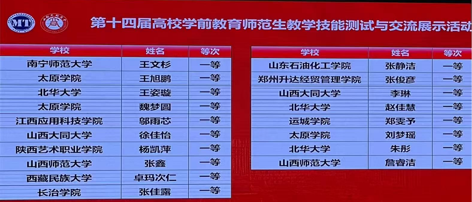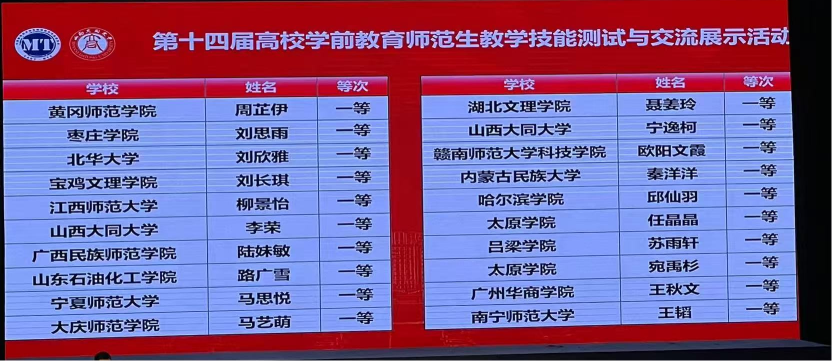 我校学生在参赛的52所高校中成绩优异,不仅是学校优良教学成果和高素质人才培养质量的生动体现,更展现了我校学子全面扎实的专业技能,积极进取、勇于拼搏的精神风貌和求实创新的学习态度。这一优异成绩将激励教育科学学院师生在今后的学习和工作中继续努力,不断提升专业水平和综合素养,为学校的发展和学前教育事业的进步贡献更多的力量。