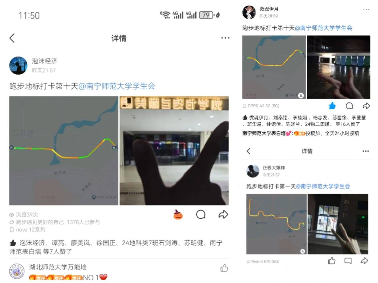 本次活动设置了校园连续跑步打卡、校园地标打卡及校园团队乐跑三个子活动。连续跑步打卡活动中,600余名同学以坚定步伐完赛,诠释青春热爱;团队乐跑环节中,24支团队活力开跑,奔跑队、疾风跑团等多支队伍着特色主题服装,以脚步丈量南师之美,用汗水凝聚团队之力;地标打卡路线串联图书馆、体育馆、实验楼等标志性建筑与景观,参与者穿梭于校园间,重拾校园时光印记,感受南师人文底蕴。本次活动展现了我校学子锐意进取的精神风貌,有效激发运动热情。
