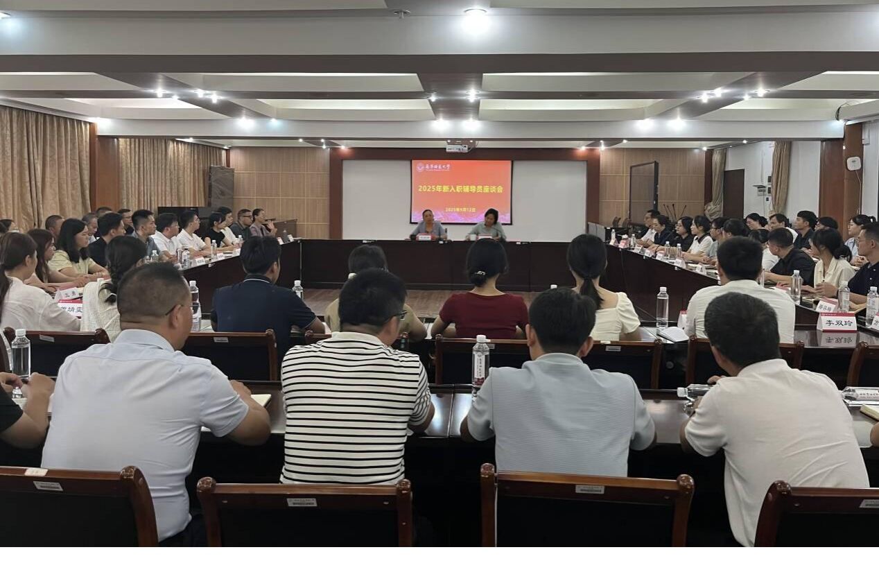 为加强学生工作队伍专业化建设,助力新入职辅导员尽快完成角色转变、明确育人职责、提升履职能力,9月12日下午,我校在明秀校区鸿远楼409会议室召开2025年新入职辅导员座谈会。学校副校长龙妮娜出席会议,全体新入职辅导员及相关部门人员参加会议。会议由党委学生工作部部长刘君宇主持。