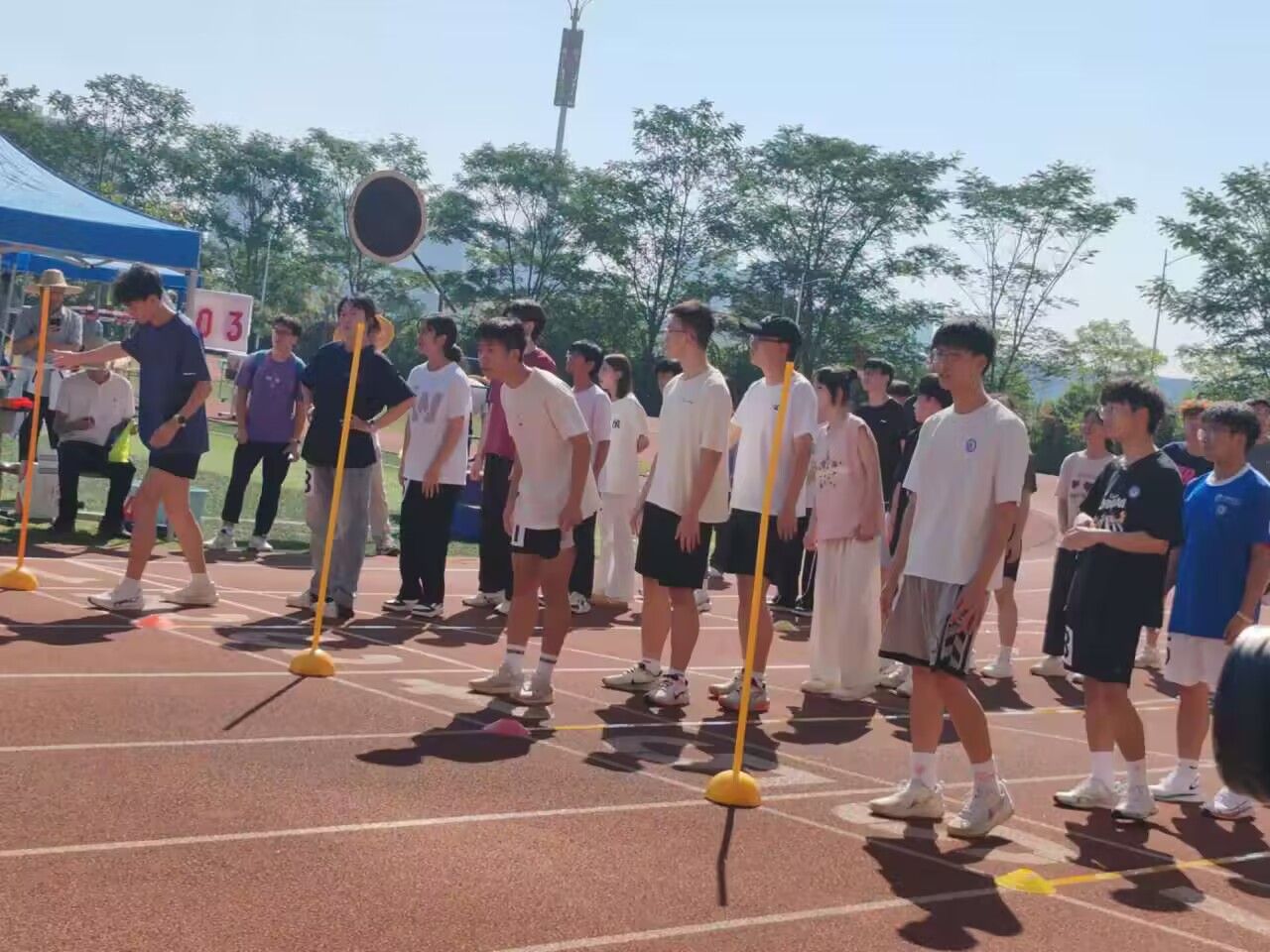 10月31日13时,我校运动会20×60米跑混合接力决赛在武鸣校区松园田径场火热进行。