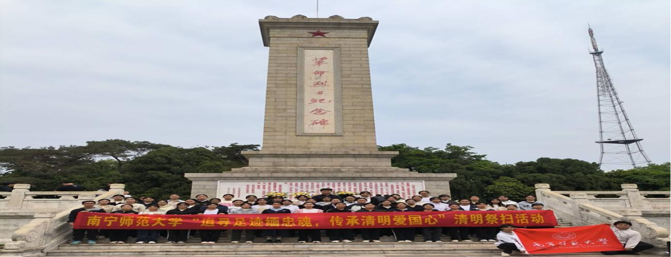 青山肃穆,翠柏凝思。4月4日,我校爱心社牵头,联合国防知识教育社组织50余名学生代表前往南宁市人民公园革命英雄烈士纪念碑,开展以“追寻足迹缅忠魂,传承清明爱国心”为主题的清明祭扫活动,深切缅怀革命先烈的丰功伟绩,传承红色基因。