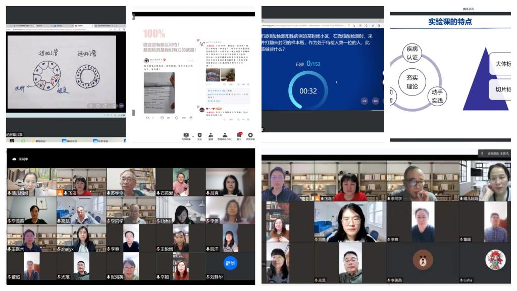 3月8日晚接到学校紧急通知,教学全部转为线上授课。当天夜里,病理学系教学团队召开紧急会议,研讨应对措施。以支部党员王医术(学系主任)、支部书记何旭(教学组长)为核心的教师团队在第一时间行动起来,利用自建的国家一流线上课程、国家精品资源课程等线上资源,创新打造了基于“超星学习通”平台“同步课堂+腾讯会议”相结合的线上教学新模式。该模式不但可以进行主题讨论、随堂测试等教学活动,还能使教师出镜、师生连麦互动等课堂实景在线上再现,实现了线下智慧课堂的线上翻转。在线下教学转线上的短短几天内,病理教学团队多次培训、演练、实践、反馈、总结、探讨、再培训、再演练、再实践,真正做到了管理有秩序、课堂有亮点、反馈有回应、线上有总结。线上授课迅速迭代成熟,不但“数量不减,质量不降”,还摸索创新了数字化切片和3D大体标本虚拟实验课堂,以及“两端三平台”多维混合教学新模式。病理课线上教学以优质保成效,用创新求突围,受到学生的一致好评。张希校长对王医术老师的授课给予了高度评价:“教学系统操作熟练,抢答环节设计得好,课堂氛围很好......”。王医术教授团队获“超星杯”第二届吉林省本科高校智慧课堂教学创新大赛一等奖。