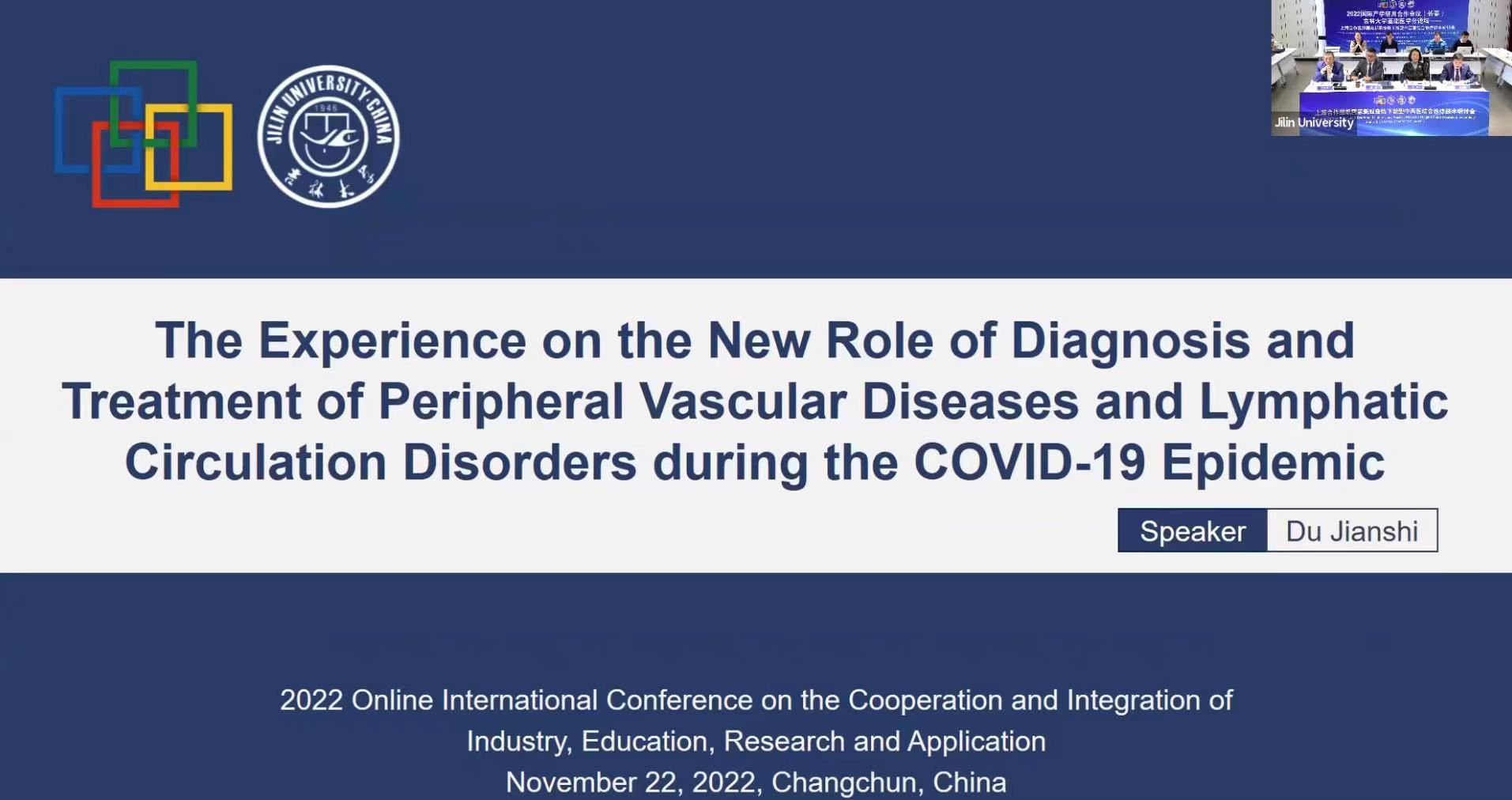 2022年11月22日,2022国际产学研用合作会议吉林大学医学分论坛——上海合作组织国家新冠疫情下新型中西医结合诊疗技术研讨会以线上线下结合形式顺利举办。来自俄罗斯巴什基尔国立医科大学、加拿大阿尔伯塔大学、荷兰莱顿大学、韩国全南大学和吉林大学的专家教授们进行了线上学术交流活动,会议由云顶国际8588yd院长王放主持。俄罗斯科学院院士巴普洛夫教授、加拿大科学院院士李新民教授、韩国全南大学丁明镐教授、俄罗斯巴什基尔国立医科大学哈萨诺娃教授、荷兰莱顿大学庞宝旭副教授、吉林大学健康研究院院长李凡教授、吉林大学中日联谊医院副院长杜建时教授、云顶国际8588yd副院长刘海岩等参加了本次研讨会。