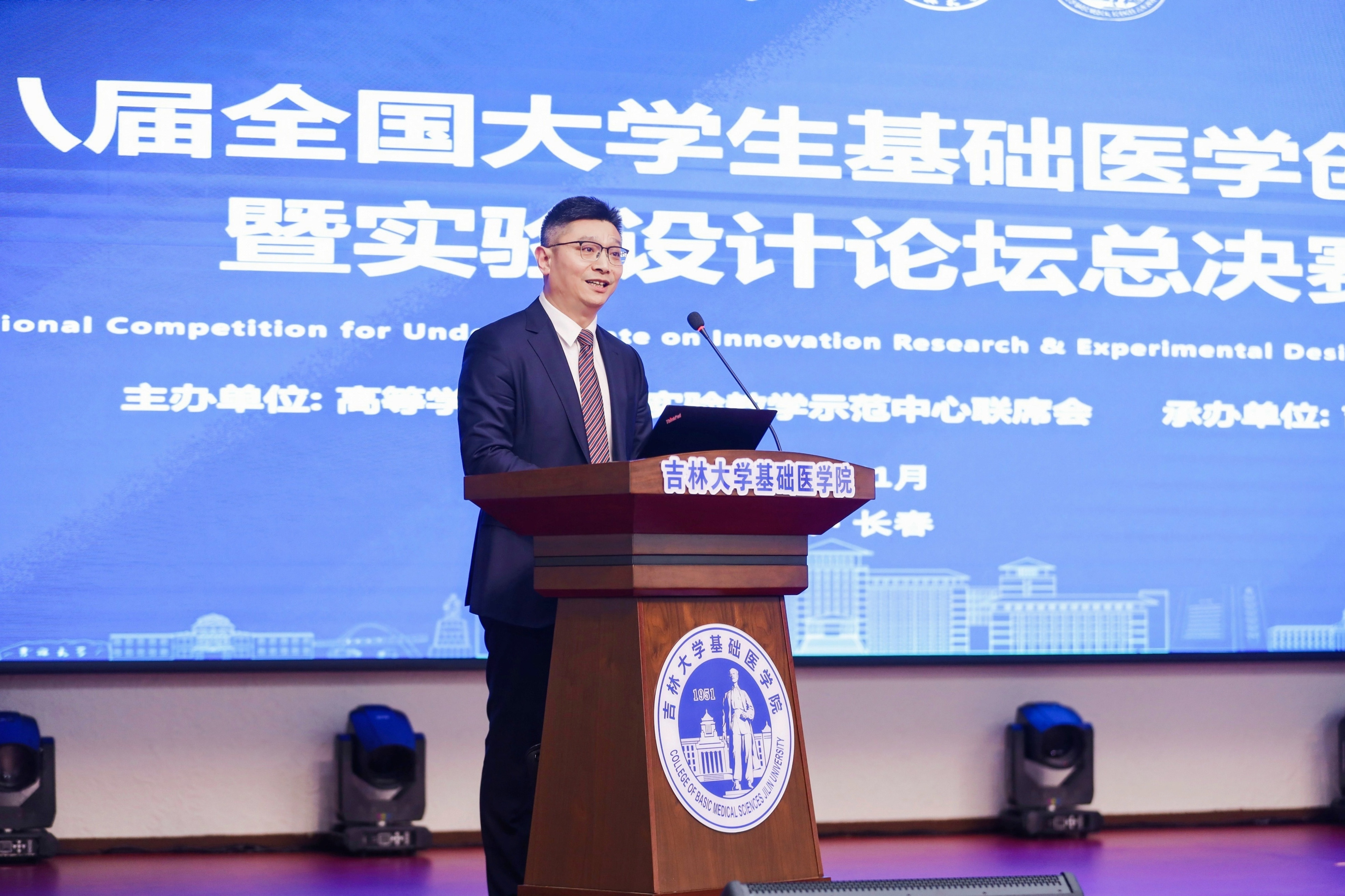 全国大学生基础医学创新研究暨实验设计论坛组委会主任、高等学校基础医学创新创业协同育人工作组组长、南方医科大学李凌教授做决赛总结致辞。他首先向吉林大学姜治莹书记对本届大赛的大力支持表示衷心的感谢,并对承办本届总决赛的吉林大学和云顶国际8588yd师生们付出的辛勤劳动给予了高度认可。同时,他总结了在前七届大赛基础上,本届总决赛的三大亮点,即首次以线上直播形式开展、首次以线上线下相结合方式进行评审监督、首次增开法医学、中医药、预防医学赛道。