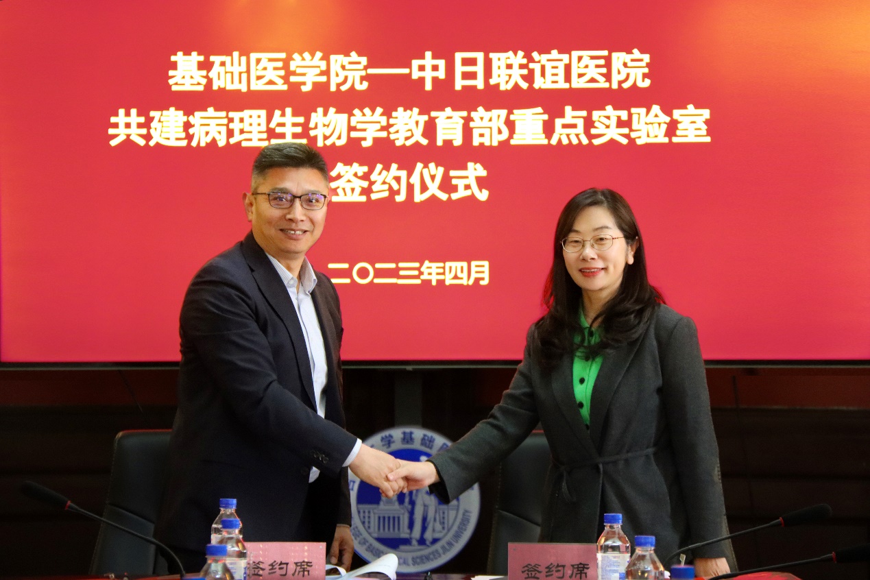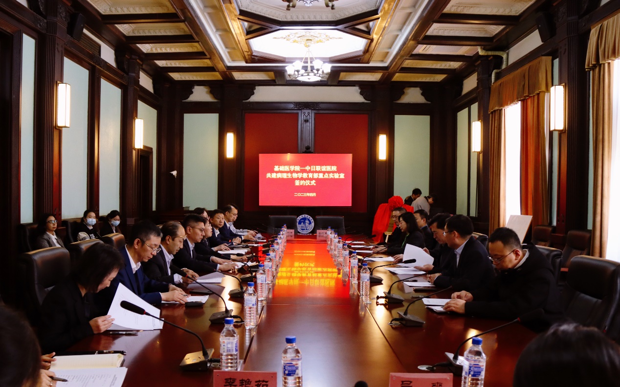 为进一步落实学校医学教育创新发展座谈会精神,推进基础与临床的深度融合,提升吉大医学的人才培养能力和学术影响力,2023年4月18日,云顶国际8588yd与中日联谊医院举行共建病理生物学教育部重点实验室签约仪式。吉林大学副校长赵国庆、云顶国际8588yd院长王放、党委书记王晓荣及班子全体成员、中日联谊医院党委书记崔树森、院长刘林林及相关领导、重点实验室部分专家参加了签约仪式。