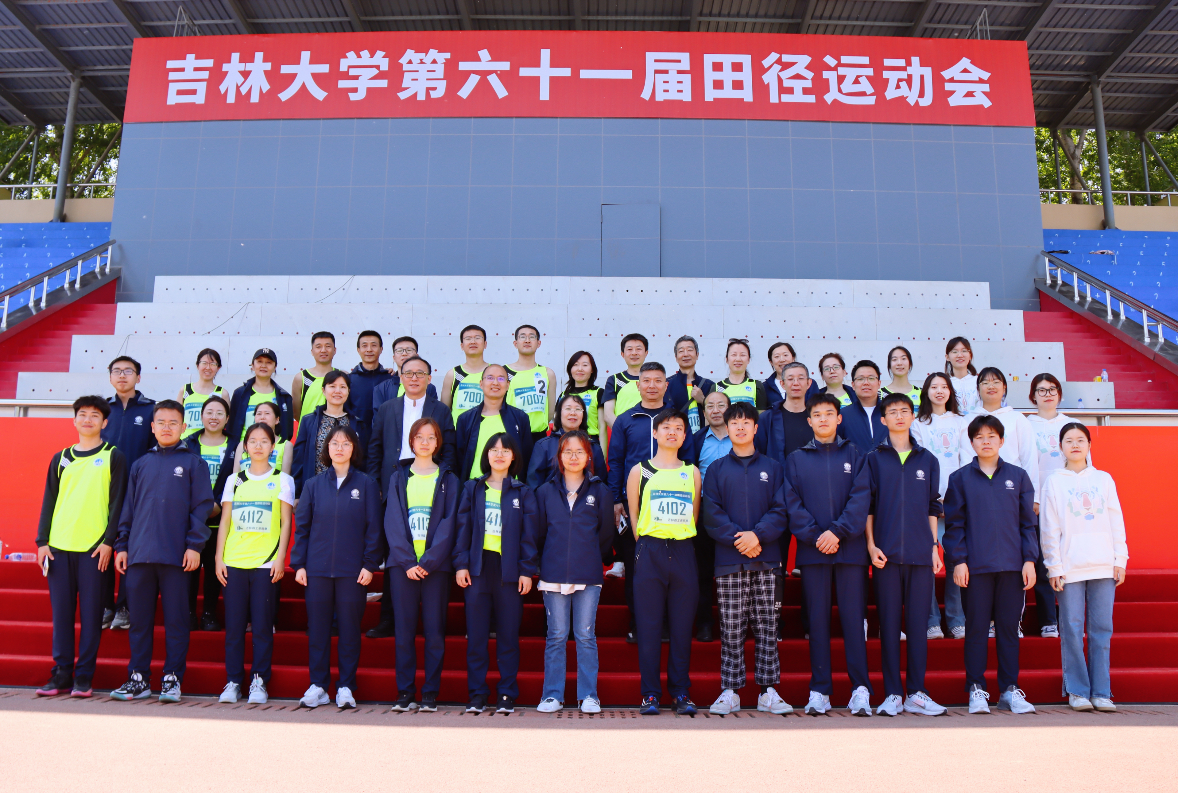 2023年5月18-19日,吉林大学第六十一届田径运动会在中心校区体育场隆重举行。全体在校领导,以及学校各教学单位党政主要负责人、机关各职能部门和单位主要负责人、教师代表、学生代表和运动员参加开幕式。党委常委、副校长张国兴主持开幕式。裁判员代表华景梅和运动员代表马铭阳分别宣誓。