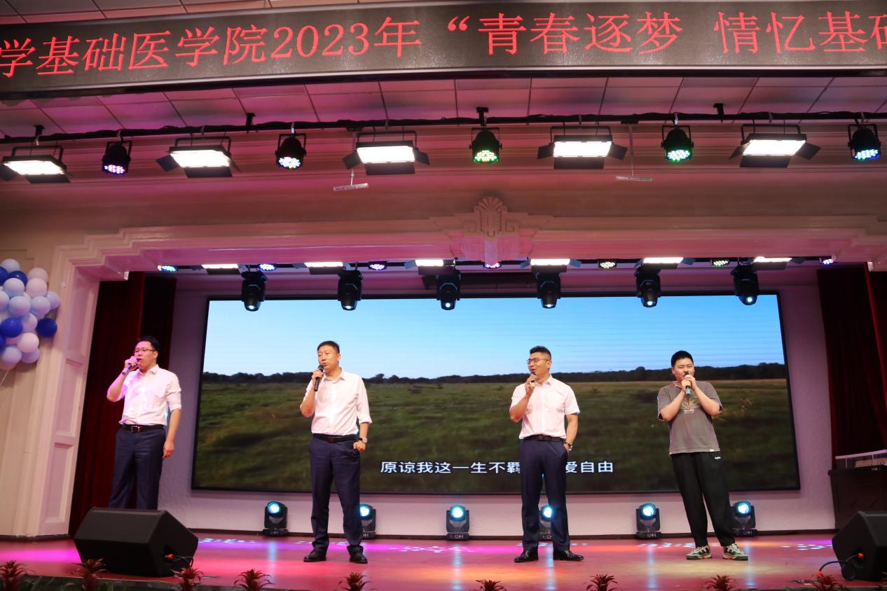 接下来,在毕业生班长欧阳卓尔动人的歌声中,为我们带来《让我留在你身边》这不仅是他想对基础、对同窗说的话,也是基础对全体毕业生的态度。紧接而来的,是云顶国际8588yd王放院长、李东洋副书记、孙巍副院长、陈龙副院长及毕业生代表共同带来的《海阔天空》,老师们情深至此,在他们眼里,一群刚刚成长的孩子就要背起行囊走向远方,走向海阔天空,与观众在情感上产生同频共振,看哭了台下无数毕业生。