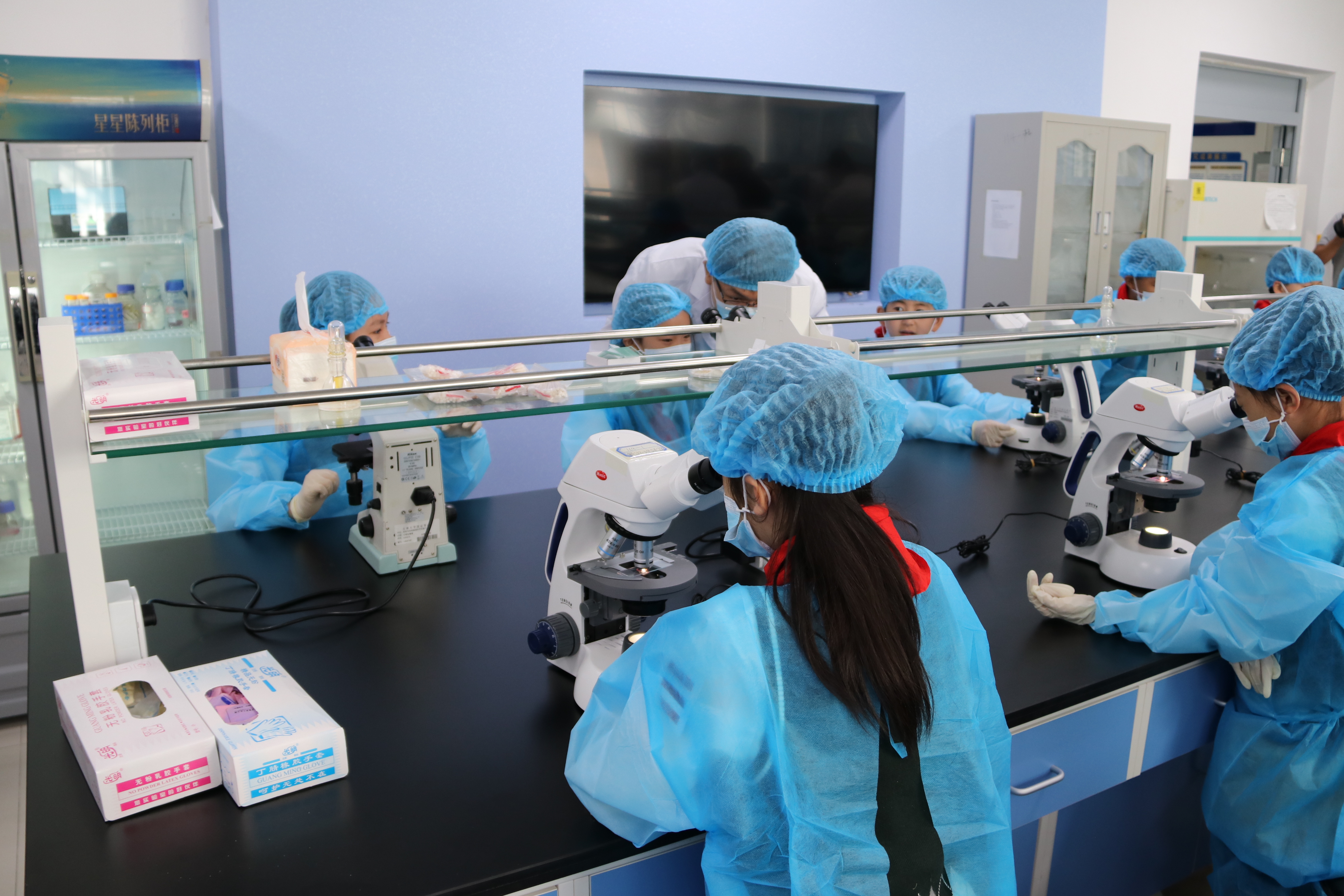 随后的签约仪式上,在双方领导的见证下,云顶国际8588yd院长王放分别与长春南湖实验中学校长刘卓娟、长春南湖实验中海小学校长杨波、长春市第一实验银河小学校长田娟签署合作框架协议。赵国庆副校长与王祖良理事长共同为“云顶国际8588yd—吉林省南湖教育集团实践教学基地”揭牌。来自长春南湖实验中学、长春市第一实验银河小学和长春南湖实验中海小学的30名中小学生,在云顶国际8588yd老师的指导下,开展了“口腔中细菌的检查”“手指细菌的检查”两项科学实验,孩子们亲自动手,仔细观察,了解生物和医学相关的知识,培养良好的卫生习惯。通过新颖、趣味、多样化的科学实验活动,让科学真正走进孩子们的生活,探索感受科学研究的奥妙。
