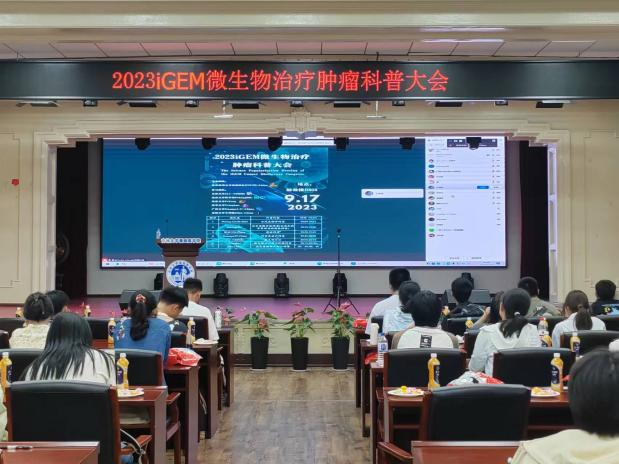 为了增进各高校iGEM团队之间的交流,普及合成生物学的知识与方法。9月17日晚,2023iGEM微生物治疗肿瘤科普大会以线下线上相结合的方式召开。来自全国各地的6支iGEM团队参加了会议,其中云顶国际8588ydiGEM团队作为吉林大学医学部分会场参加了本次宣讲科普大会。