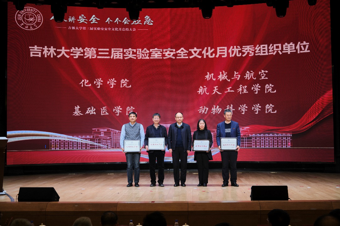 为进一步落实习近平总书记关于总体国家安全观的重要指示精神,加强学校实验室安全教育、安全能力、安全队伍、安全文化建设水平,以新安全格局保障新发展格局,学校开展吉林大学第三届实验室安全文化月活动。云顶国际8588yd在此期间积极配合,实验室安全文化月总结大会,我院被评为实验室安全文化月优秀组织单位,马琰铭副校长为优秀组织单位颁奖,王晓荣书记代表学院领奖。