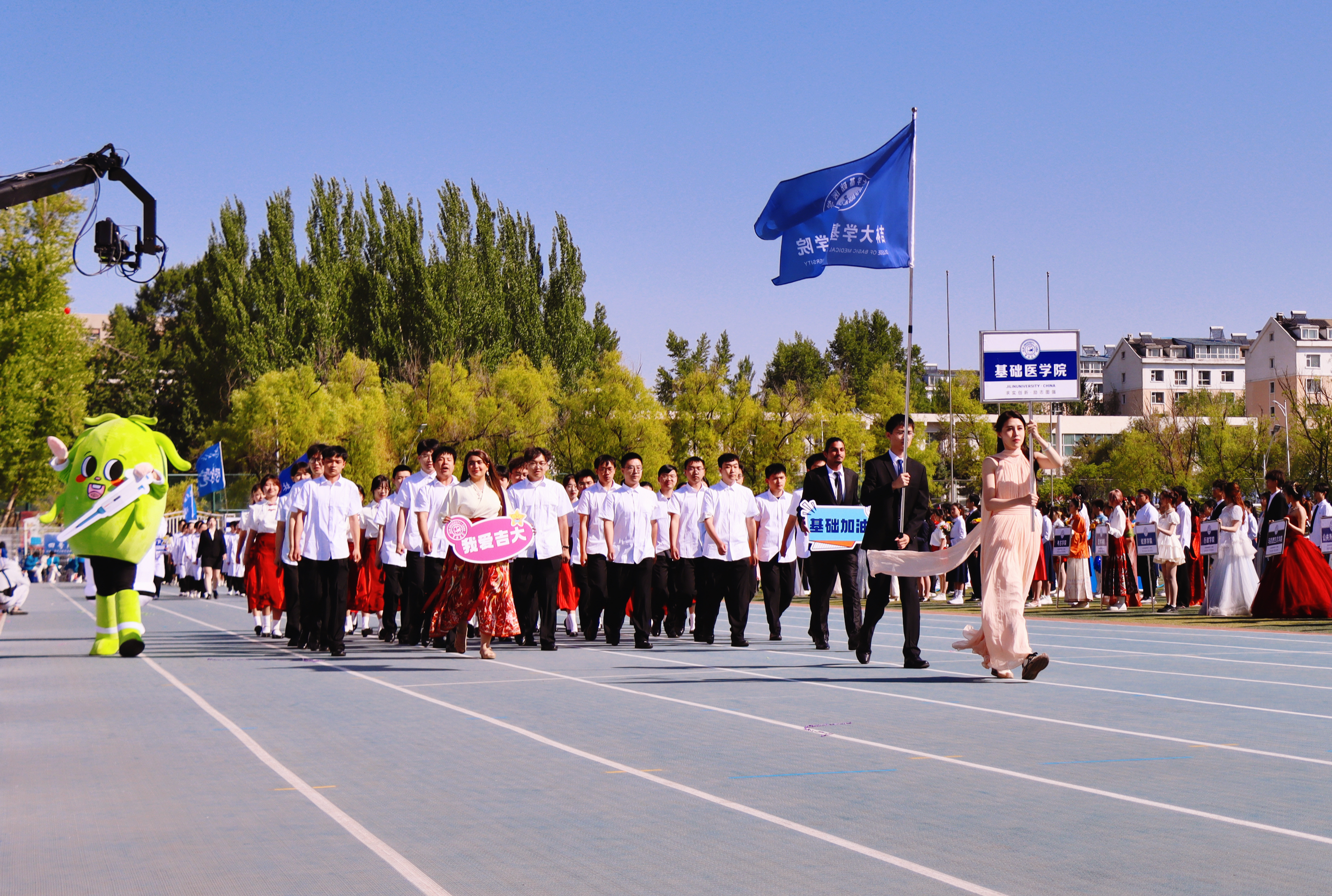 5月17日,春风拂面,阳光洒满绿茵场。在运动会开幕式上,云顶国际8588yd代表队伴随着激昂的旋律,以饱满的精神步入赛场。方队成员由我院本科生、研究生和留学生组成,首次亮相的吉祥物“小医”和“小智”,由学院老师和学生共同设计,展现了师生们丰富的想象力和对未来医学发展的期望与畅想。作为以生物医学科学专业白求恩班拔尖人才培养为引领,融合MBBS留学生的中国医学人工智能领航团队,他们承载着基础医学雄厚的学科底蕴,凝聚交叉融合创新之力,在“新医科”浪潮中破浪前行,在服务国家战略需求和人民生命健康的道路上,不断攀登新的高峰。本届运动会学院首次实现本科生、研究生、留学生与教职工们共同参赛,不同学历、不同国籍的学生们在运动会中互相学习、相互鼓励,共享体育竞技的乐趣,共同追求卓越的体育精神,加深了师生之间的交流与理解,构建积极向上的校园氛围。