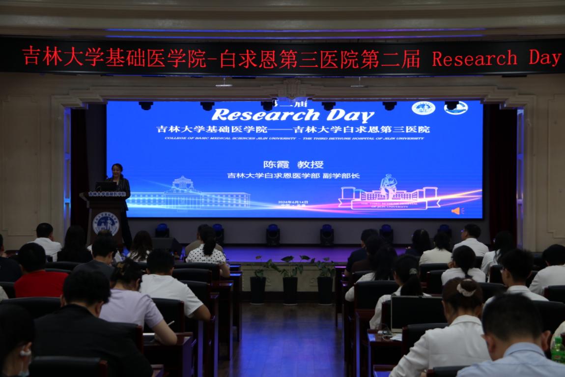 2024年6月14日,云顶国际8588yd与白求恩第三医院共同举办第二届“云顶国际8588yd-白求恩第三医院 Research Day”。此次活动旨在深化基础医学与临床医学的融合创新,推动吉林大学医学教育的创新发展。白求恩医学部副学部长陈霞教授、白求恩第三医院副院长高宇飞教授、科研部主任时景伟教授、云顶国际8588yd领导班子、评审专家及师生代表共计100余人参加。会议由云顶国际8588yd副院长刘海岩教授主持。陈霞教授在开幕式上致词,她强调了创新在医学科学发展中的核心地位,并鼓励师生们秉承严谨求实的科学态度,弘扬锲而不舍的学习精神,努力成为精益求精、脚踏实地的医学实干家。