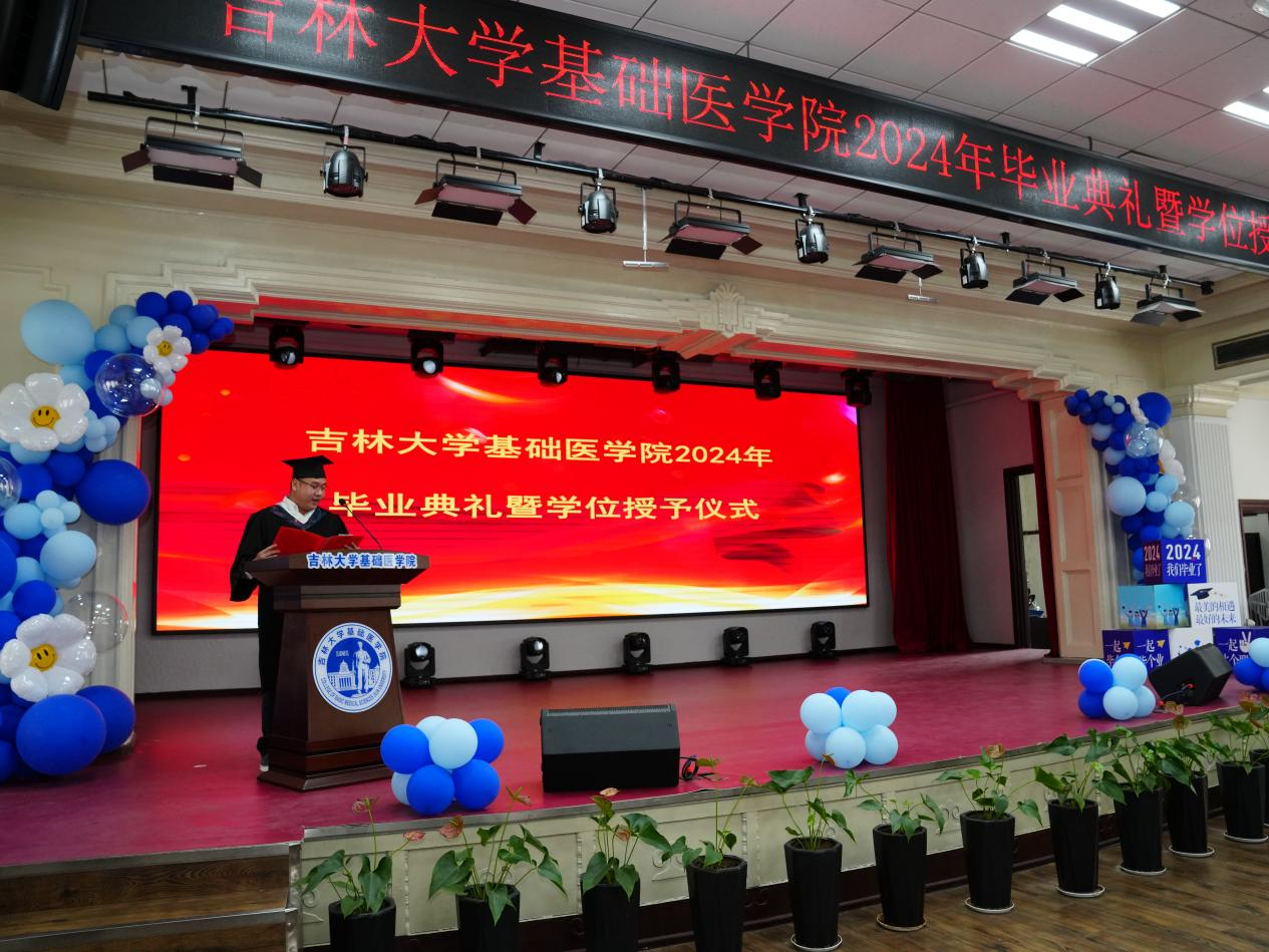 云顶国际8588yd院长王放致辞,向顺利完成各阶段学业、即将告别母校、迈向人生新高度的毕业生致以最热烈的祝贺。大家一同见证了学院在医学教育创新发展中取得的成就,迎来了多个里程碑意义的“第一”,感谢毕业生把美好年华留在基础,把绚烂青春献给科学研究。殷切希望大家能永远做具备严谨科学态度和保持创新精神的基础人,以在基础所学,跨出校门、奔赴祖国大地,为人民健康伟大事业做出卓越贡献。