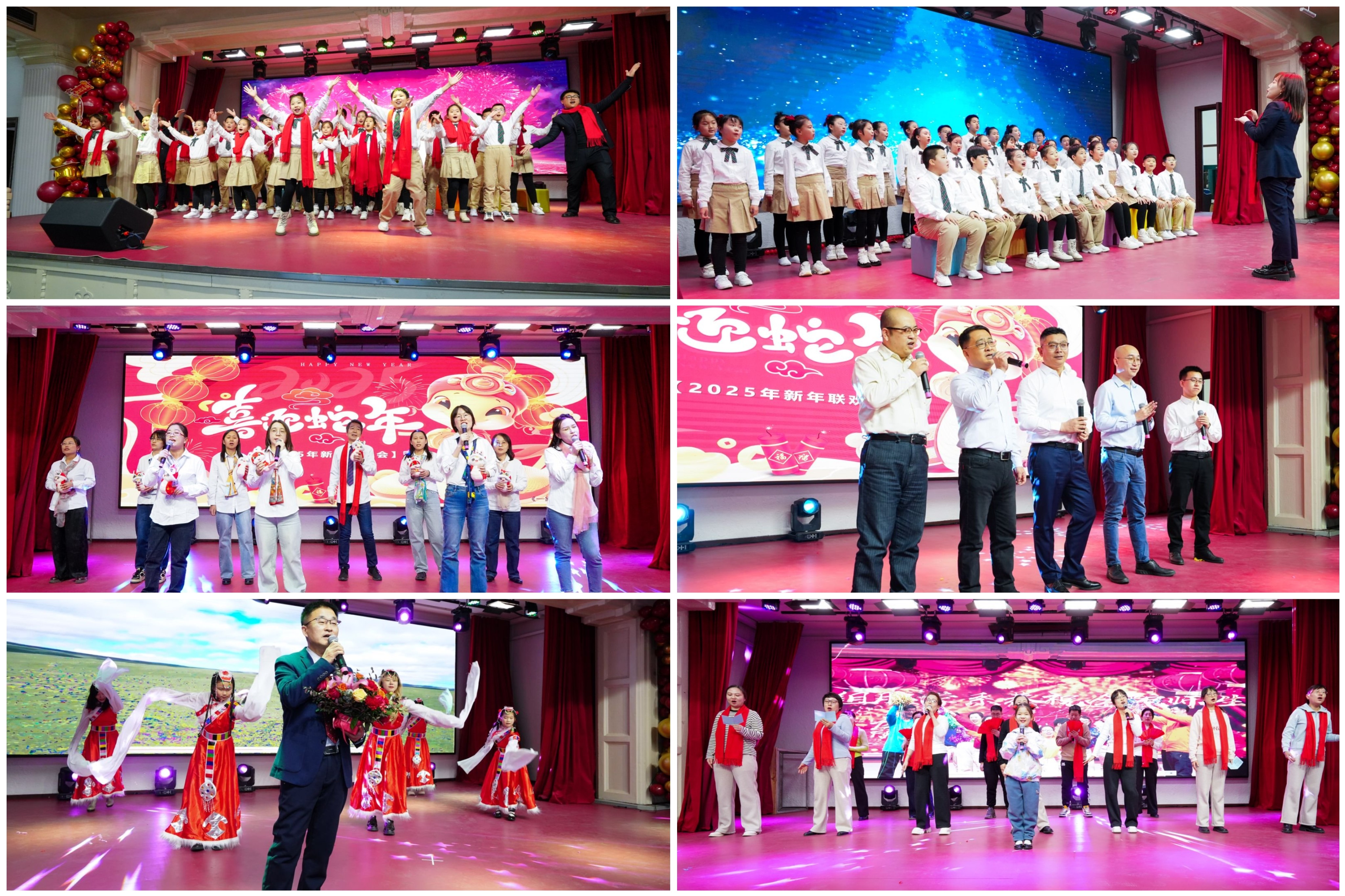 联欢会在长春市第一实验银河小学星星合唱班孩子们演唱的一曲《爱漫天空》中拉开序幕,优美的童声仿佛带我们进入了梦幻的世界;教职工第一党支部带来的扇子舞《雪龙吟》,将中华古典舞蹈完美的呈现,让我们领略了老师们的风采与活力;白求恩医学部王曦老师带来的独唱《木鱼与金鱼》,让现场观众深深沉浸在歌曲的旋律与情感之中;王放院长与智加未来、华为两位企业嘉宾合唱歌曲《跟往事干杯》,用歌声对过去致敬,同未来举杯,将现场气氛推向了新的高潮;组织学与胚胎学系带来的小合唱《财神快点来》,免疫学系、细胞遗传学系以及实验教学中心三综合带来的小合唱《一路生花》让我们感受到了浓浓的喜庆与祝福;丁健峰老师和他可爱的儿子表演的相声《说好不说好》让现场欢声笑语不断;来自吉林省艺术学院的实力唱将刘华晨老师演唱的歌曲《日落大道》和《男孩》,惊艳全场;病理学系带来的歌伴舞《苹果香》、生理学系的歌伴舞《万疆》,生物化学学系,实验教学中心二综合及测试中心合唱的《少年的你啊》,纷纷展现了学院教职工蓬勃向上的精神面貌,赢得了阵阵喝彩;学院留学生班主任及四位留学生同学带来的歌曲《恭喜发财》,将不同文化的魅力融合在音符间;白求恩医学部张博老师带来的魔术《654俱乐部》精彩纷呈,让人眼前一亮;最后由云顶国际8588yd星光师生合唱团带来大合唱《灯火里的中国》《不忘初心》,铿锵有力、激情澎湃,传递着团结与奋进,表达了对学院的美好祝愿,为联欢会画上了圆满的句号。