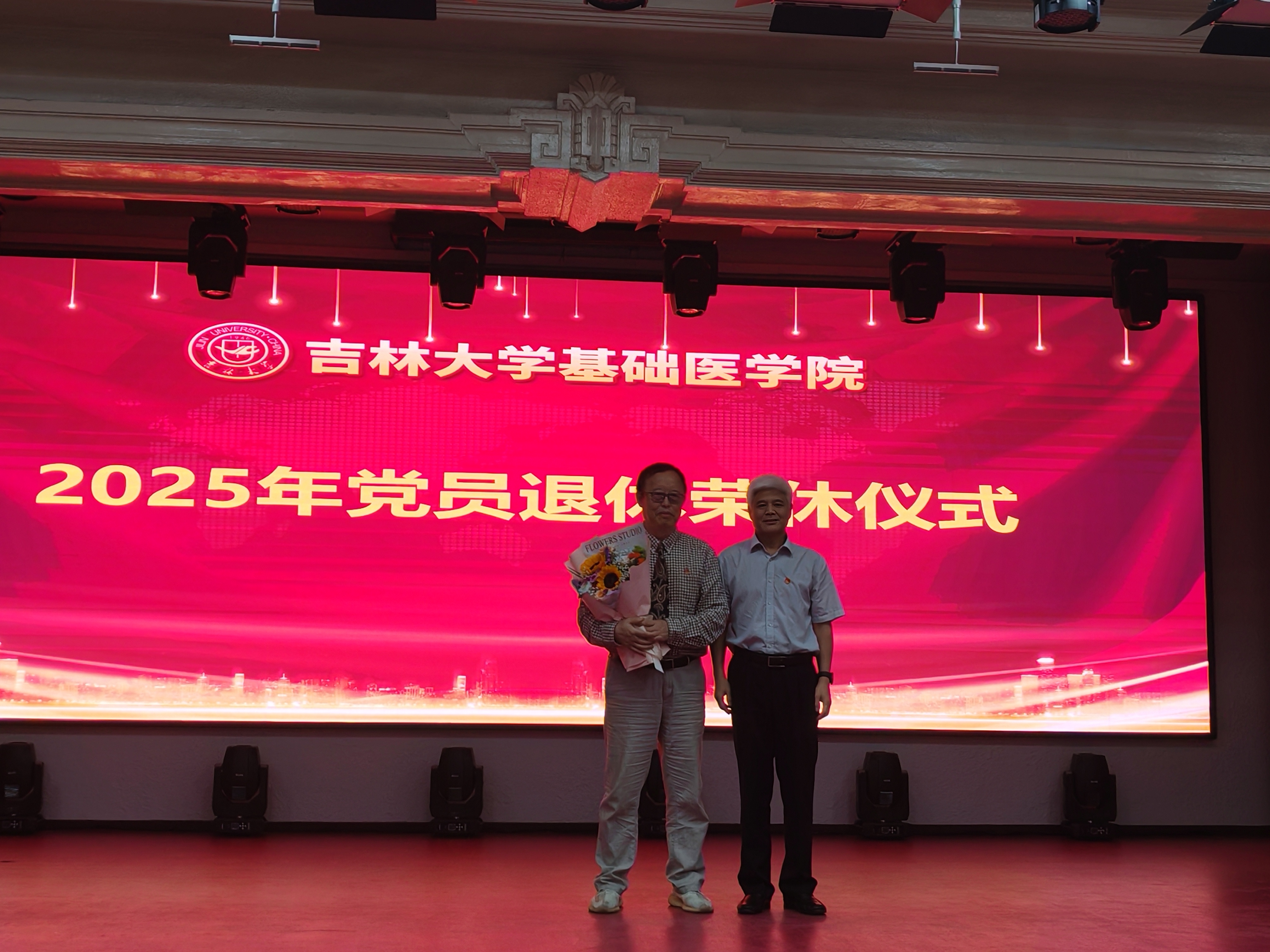 随后,学院党委举行了2025年云顶国际8588yd党员退休荣休仪式。学校党建联络员屈英和为退休党员于永利教授送上献花,学院院长王放为于老师颁发学院党委特殊制作的党员荣休纪念章。于永利教授在大会上发言。于永利教授和大家分享了他从军、从教以来的奋斗经历及其感受,以及他在人生“徘徊时期”做出的抉择。他用自身的经历告知大家什么是爱国、为什么要爱国;鼓励学院师生要昂首迈步、抛去不必要的忧虑,让生命绽放光彩。优秀党务工作者于蕾作为代表上台发言。