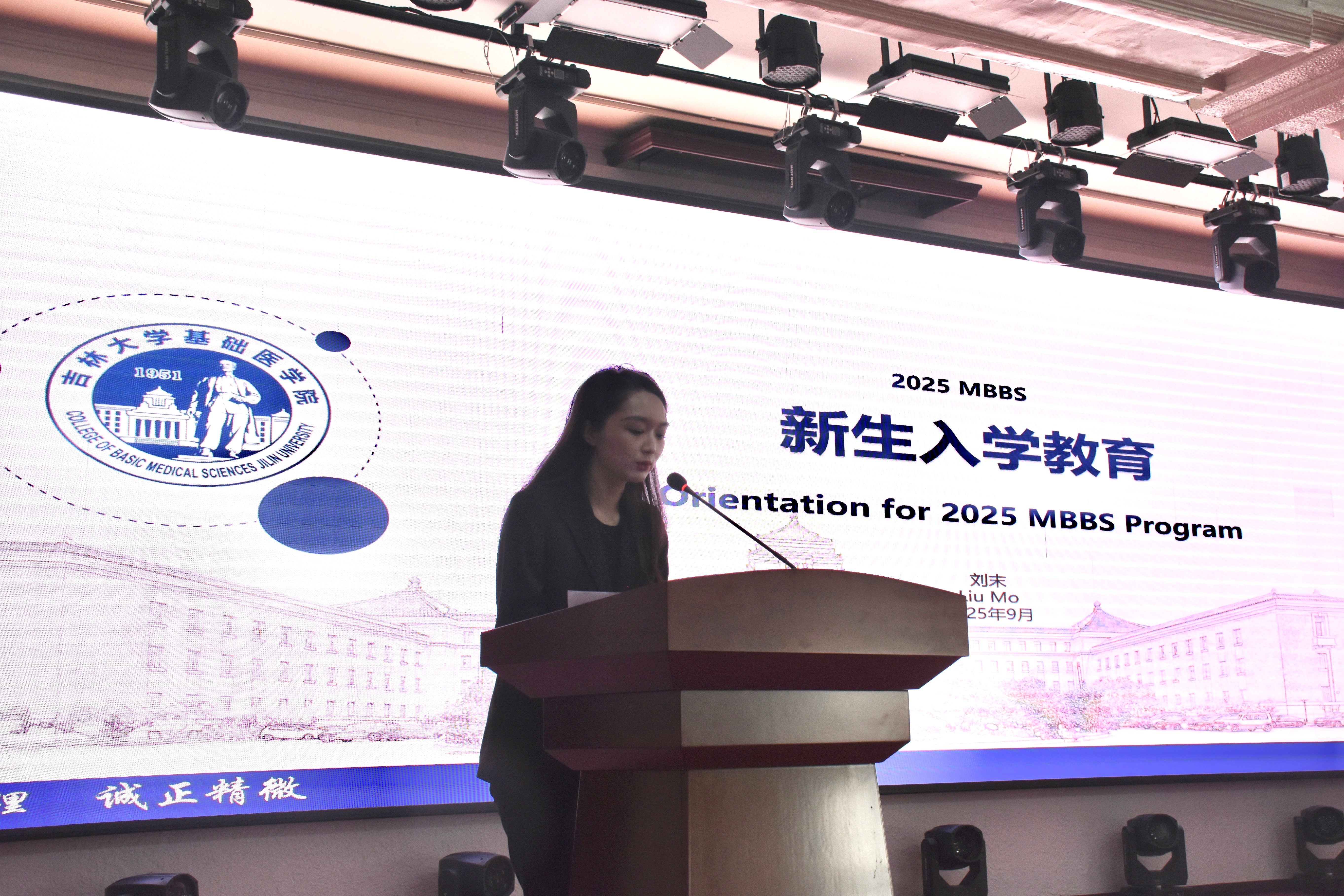 培训开始,与会领导、老师和新生们共同观看了由我院MBBS留学生拍摄的欢迎视频《Welcome to JLU》。视频通过留学生的视角,以真挚热烈的情感和生动丰富的画面,展现了吉林大学美丽的校园环境、丰富多彩的校园活动、先进的教学设施、雄厚的科研力量,让新生们对未来的学习生活充满了期待和憧憬。