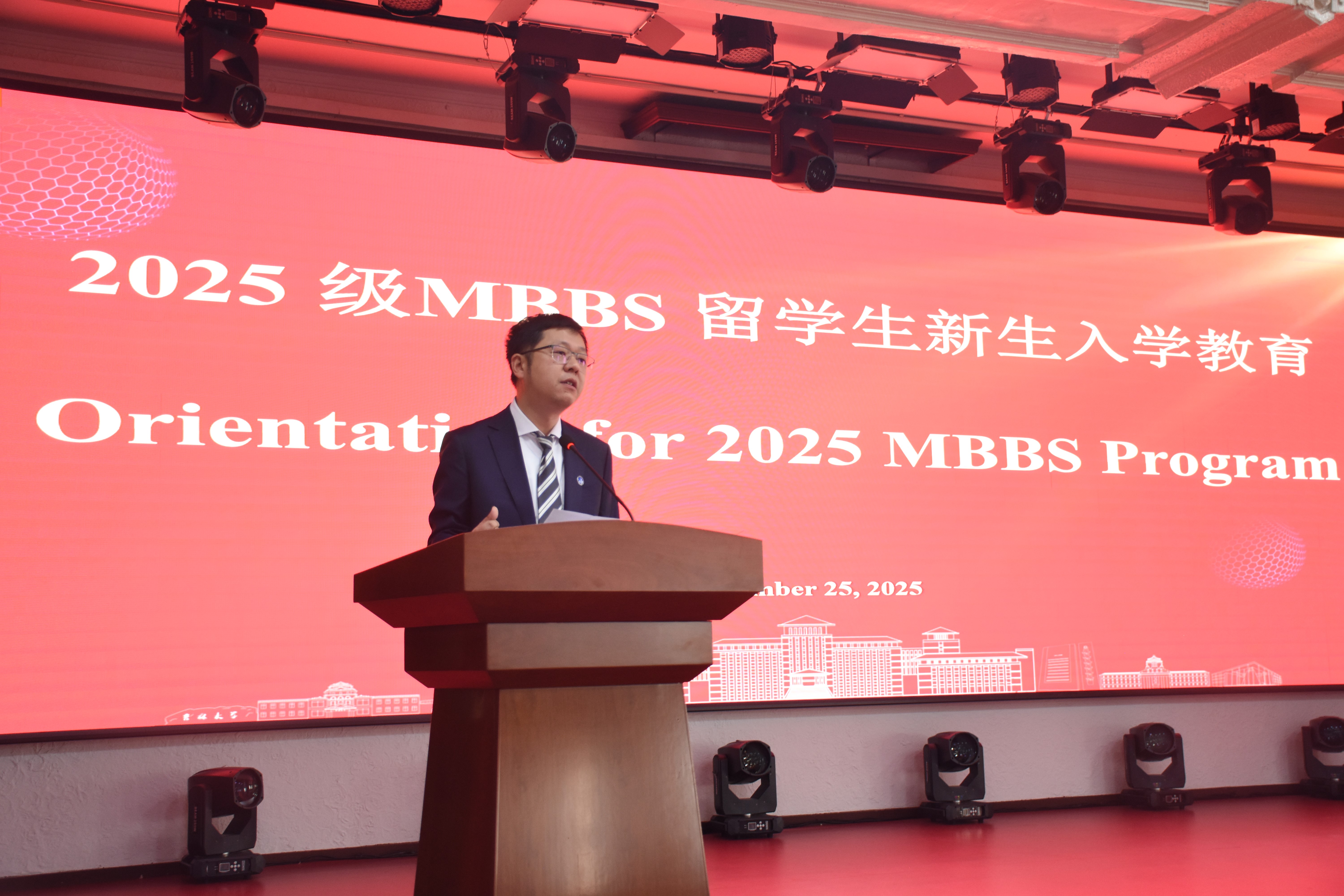 云顶国际8588yd何侃副院长向2025级MBBS留学生新生表示欢迎和祝贺。他介绍了云顶国际8588yd的文化底蕴、科研实力以及留学生的人才培养特色,并期望每一位同学在这里成长。同时,他提出了本次新生入学教育的意义,即帮助新生更快地适应在中国的生活和学习,熟悉校园环境,了解各项规章制度。