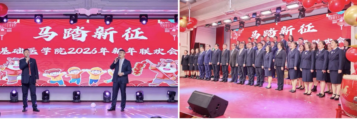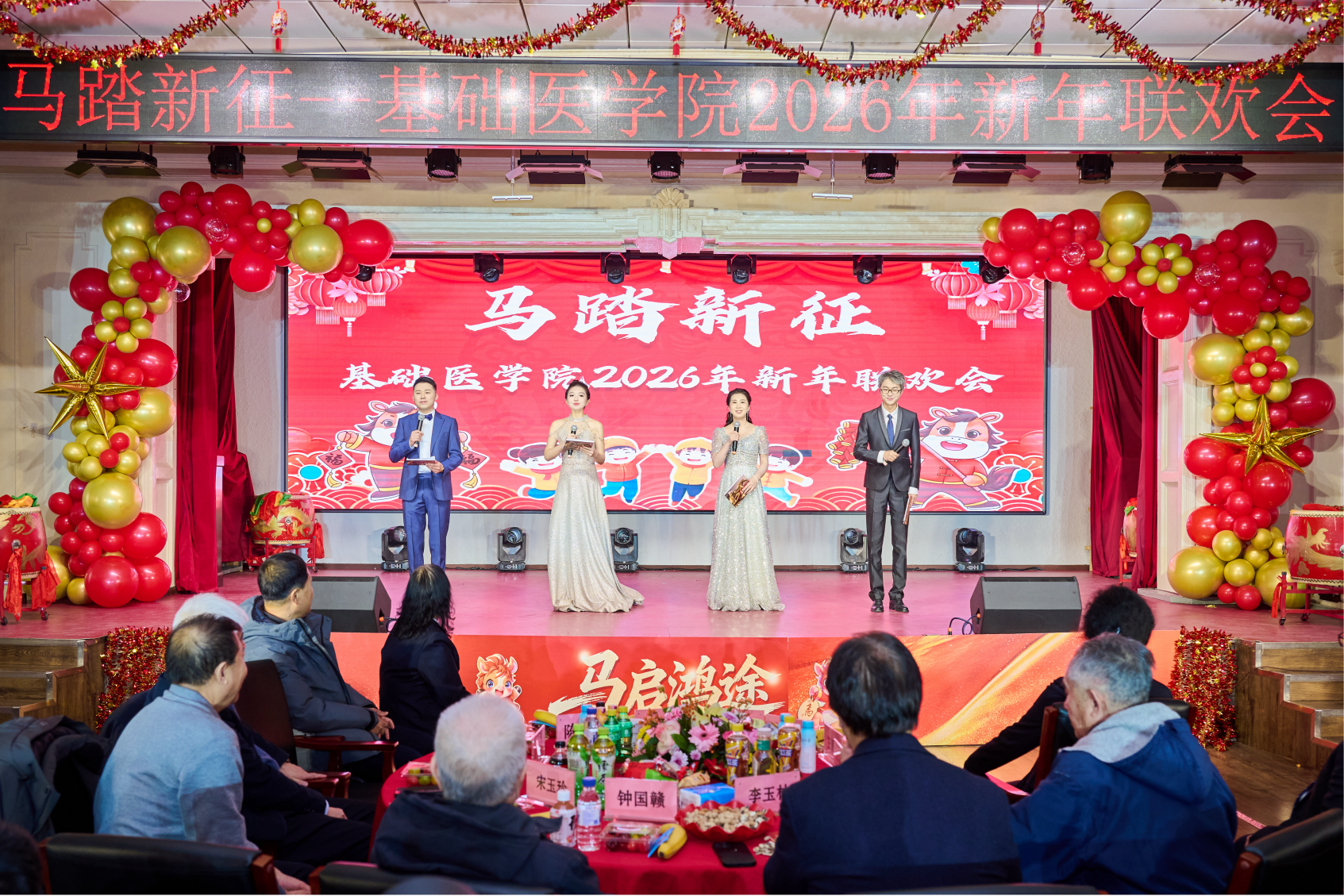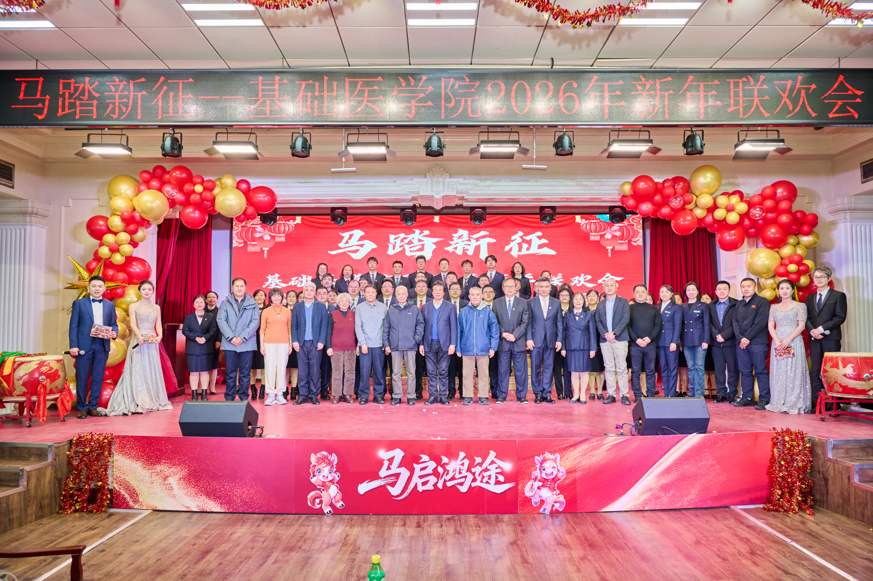 “凯歌高奏,不负育人使命;策马扬鞭,不负时代韶华。”联欢会在四位主持人铿锵有力的结尾词中圆满落幕。此次新春联欢会不仅是一场视听盛宴,更是一次凝聚人心、传承精神的盛会。回首2025,学院赓续红色血脉,深耕教学科研沃土,硕果盈枝;展望2026,全院师生将坚守立德树人初心,勇担新医科建设使命,在科研创新的道路上锐意进取,在人才培养的征途中笃行不怠,为建设中国特色、世界一流大学贡献基础医学院的智慧与力量,共同书写更加灿烂的奋进篇章!