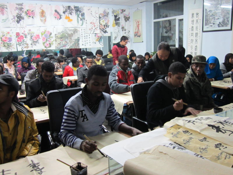 11月10日下午,在独具中国风韵的老年大学书法班教室内,白求恩医学院留学生办公室、阳光志愿者协会项目部、志愿服务部联手书法班共同举办了中外大学生书法学习活动。20余名留学生和10名中国学生参加了该活动。